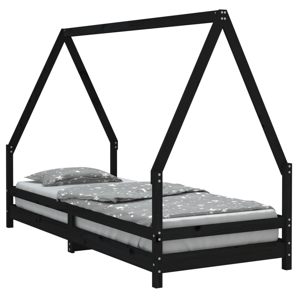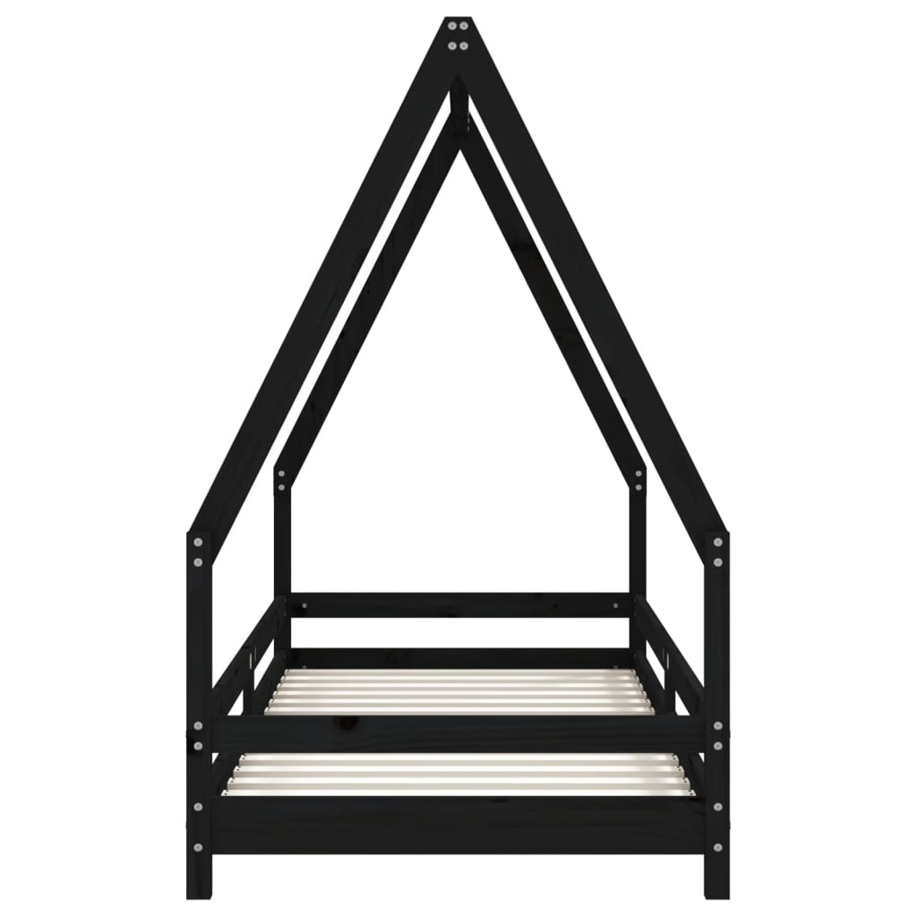 fekete tömör fenyőfa gyerekágykeret 80 x 200 cm