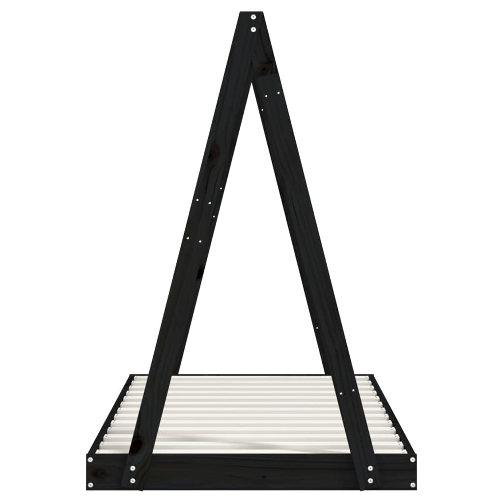 fekete tömör fenyőfa gyerekágykeret 80 x 160 cm