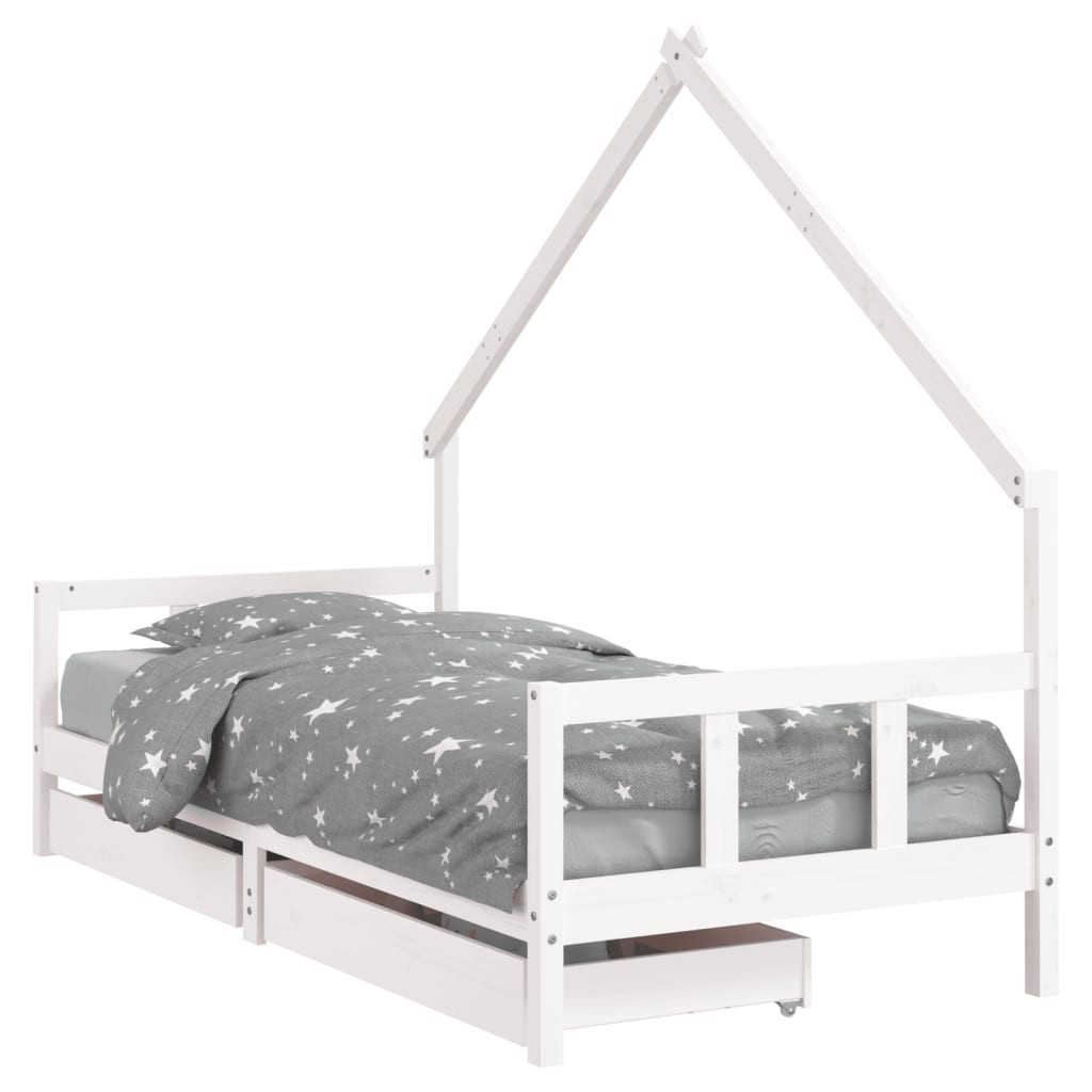 fehér tömör fenyőfa gyerekágy keret fiókkal 90x190 cm