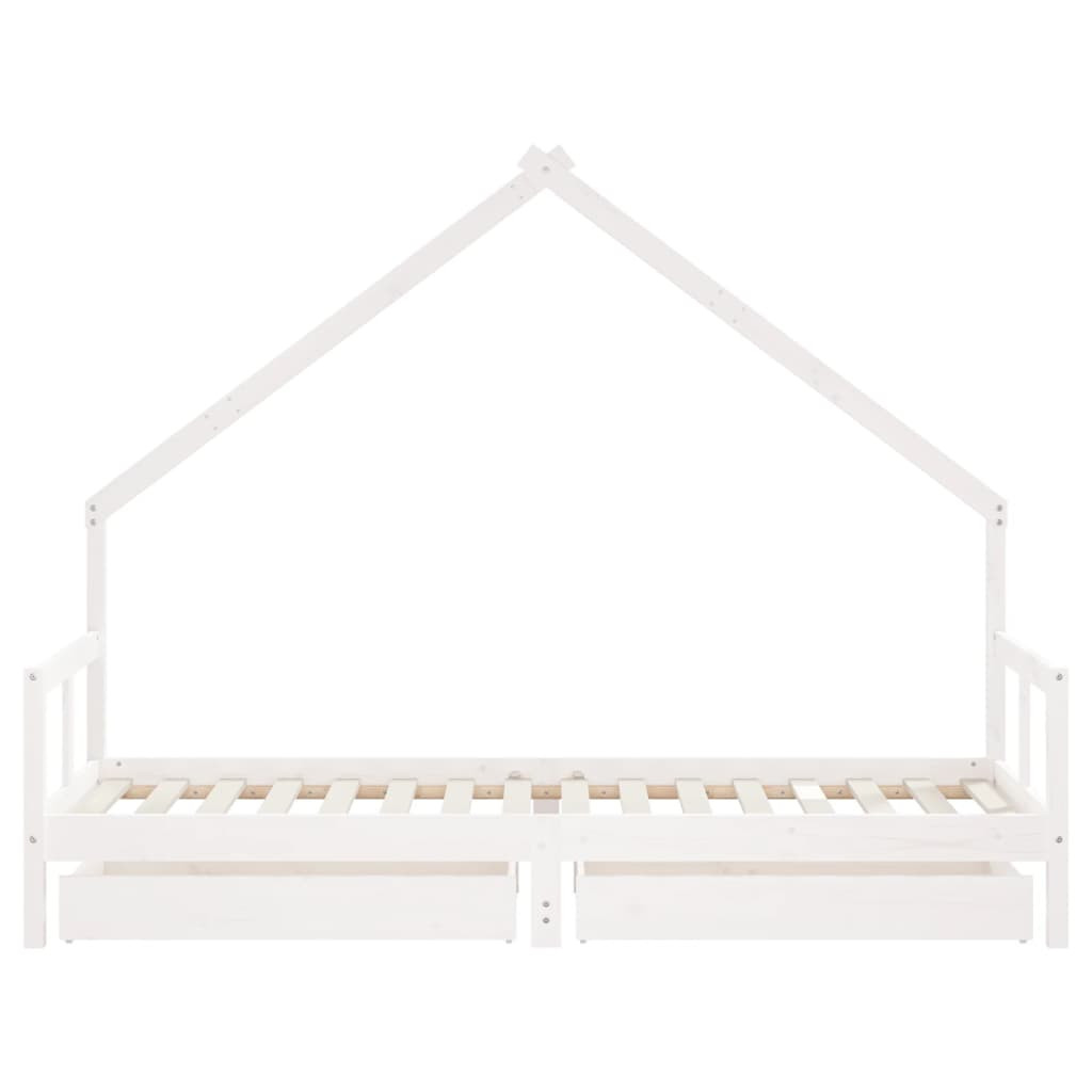 fehér tömör fenyőfa gyerekágykeret fiókokkal 80 x 200 cm