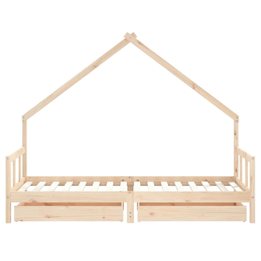 Teremtsen vidám teret csöppségének ezzel a fantasztikus, fából készült gyerekágykerettel! Tömör fenyőfa: A gyerek ágykeret tömör fenyőfából készült. A tömör fenyőfa egy gyönyörű, természetes anyag. A fenyőfa egyenes erezetű, a csomók pedig jellegzetes, rusztikus megjelenést biztosítanak az anyagnak.Robusztus lécek: A gyermekágy fa lécekkel rendelkezik a szilárd alátámasztás, a szellőzés és a stabilitás érdekében.Ház alakú ágy kialakítás: Ez a vagány, de ugyanakkor egyszerű kialakítású kisgyermekágy az alvásidőt szórakoztató élménnyé varázsolja. Számos lehetőséget kínál a játékra és gyermeke kis világának felépítésére, hogy ösztönözze a kreativitást és a képzelőerőt.Tárolófiók: A mellékelt tárolófiókok bőséges helyet biztosítanak a kisebb játékok, ruhák és ágyneműk tárolására, rendben és tisztán tartva a szobát.Átgondolt dizájn: Az egyszemélyes gyerekágy magasságát úgy tervezték, hogy alacsonyan legyen a talajhoz képest, így gyermeke könnyen be- és kiszállhat az ágyból. FIGYELEM. Ne helyezze a gyermekágyat hőforrások, ablakok és egyéb bútorok közelébe. FIGYELEM. Ne használja ezt a gyermekágyat, ha valamelyik része eltört, elszakadt vagy hiányzik.