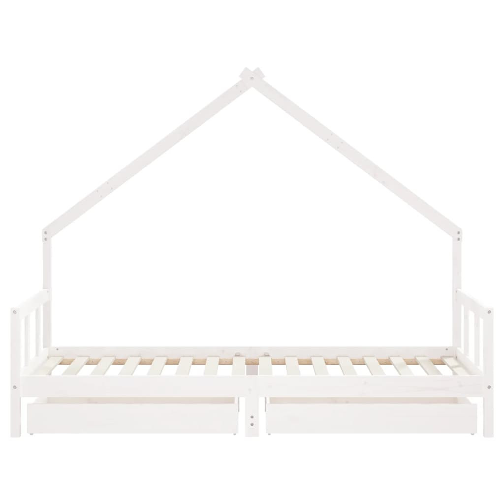 fehér tömör fenyőfa gyerekágykeret fiókokkal 90 x 200 cm