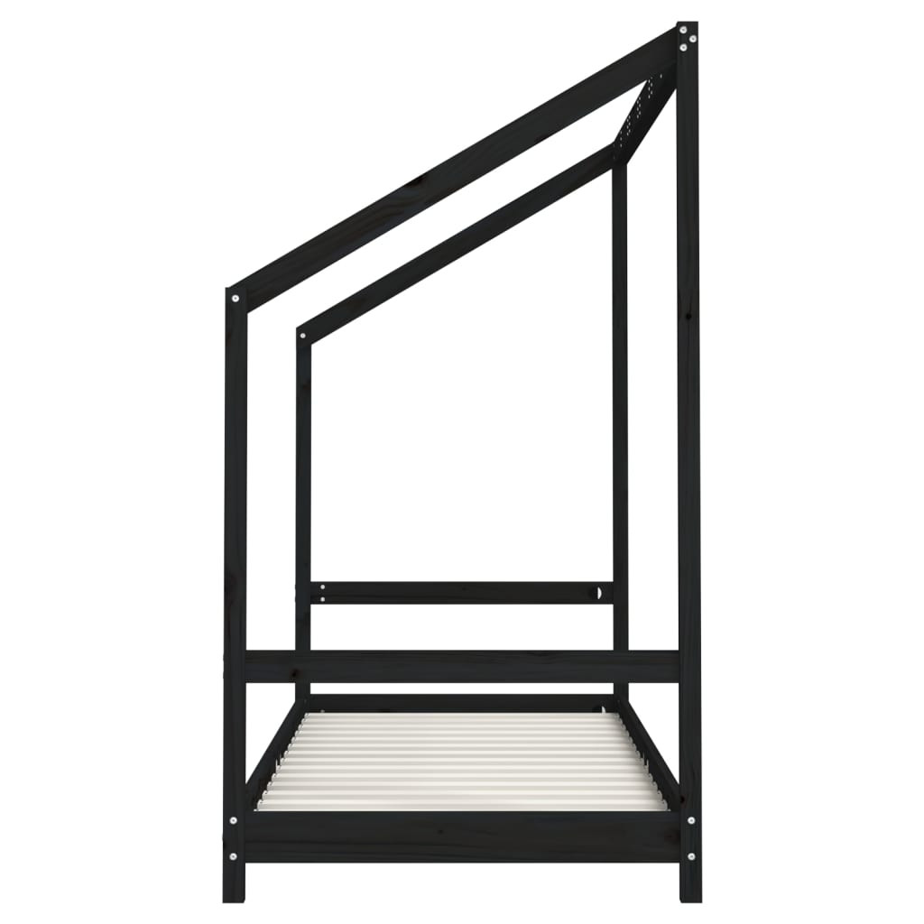 fekete tömör fenyőfa gyerekágykeret 80 x 200 cm