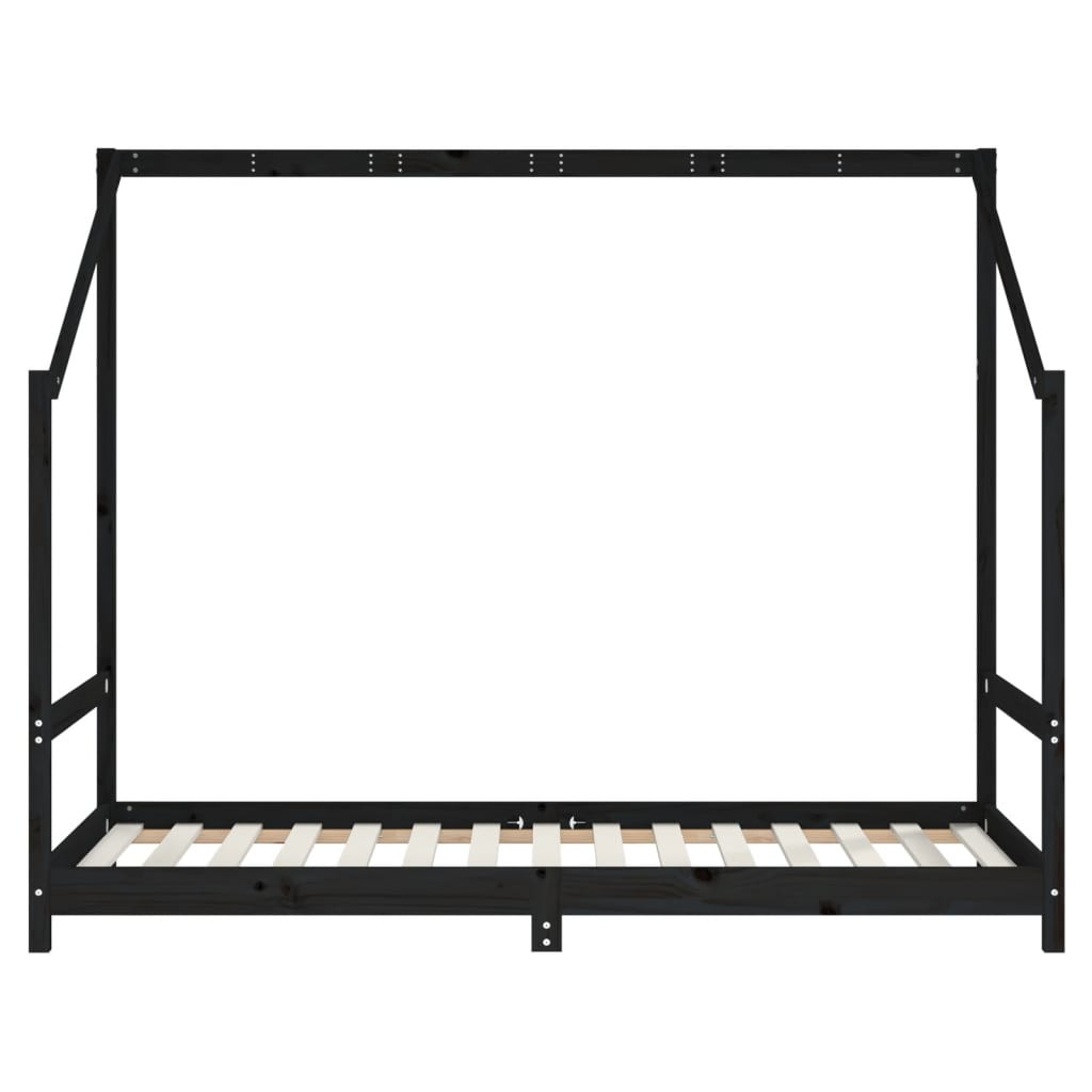fekete tömör fenyőfa gyerekágykeret 90 x 190 cm