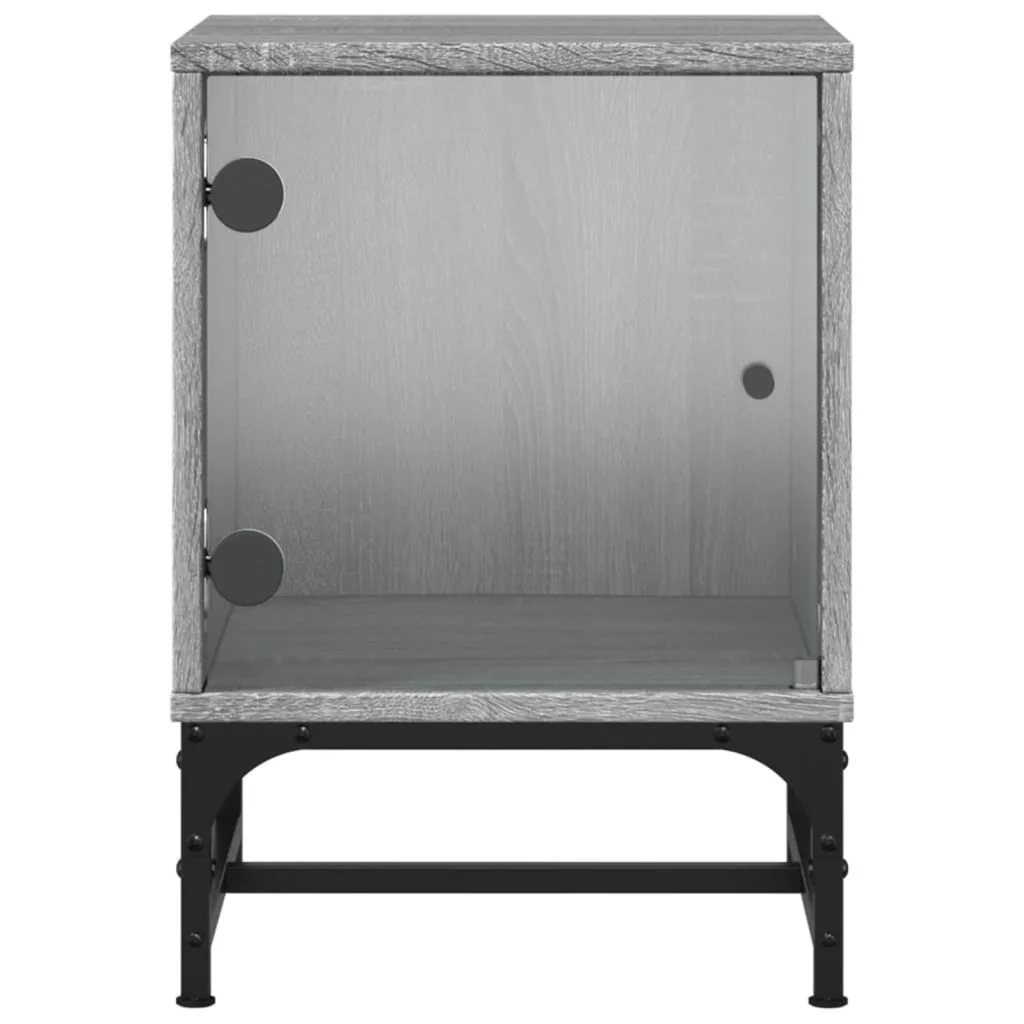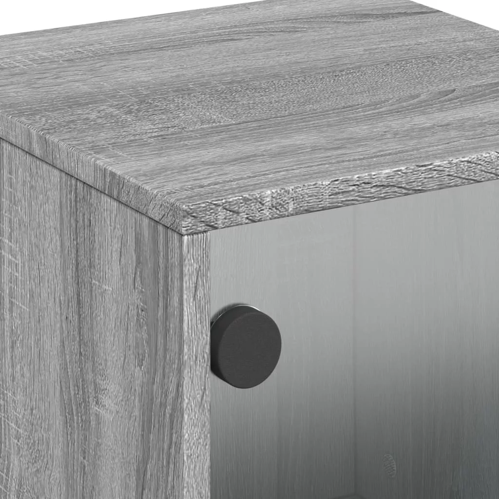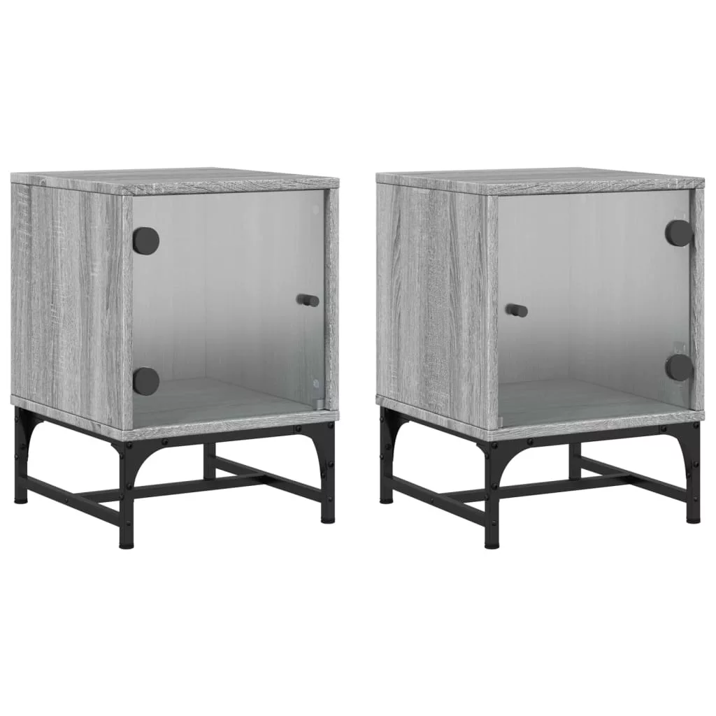 2 db szürke sonoma színű éjjeliszekrény üvegajtóval 35x37x50 cm