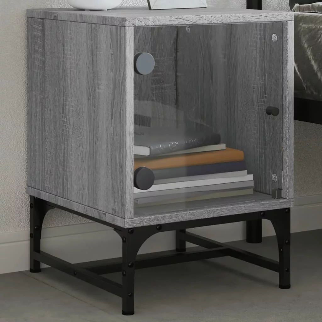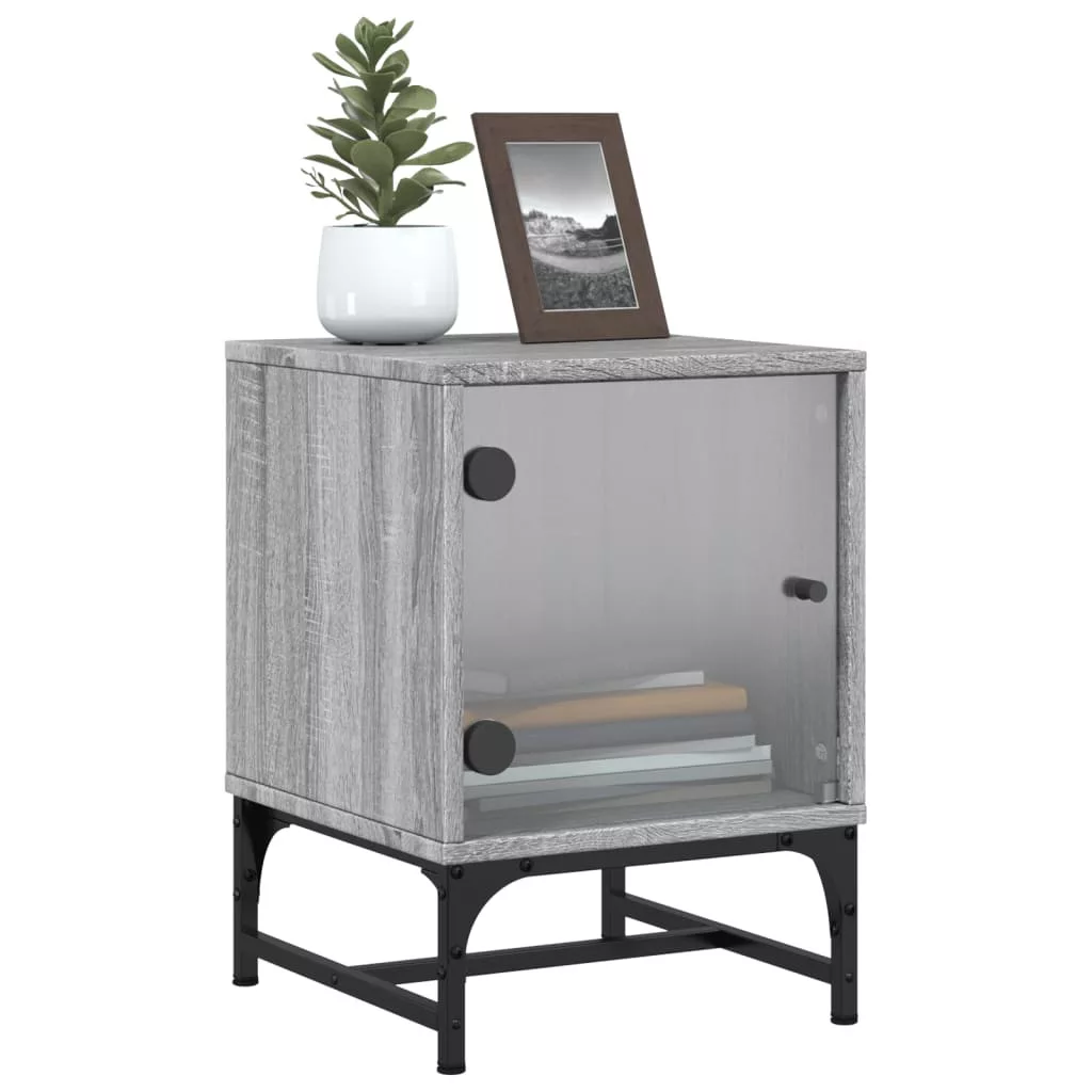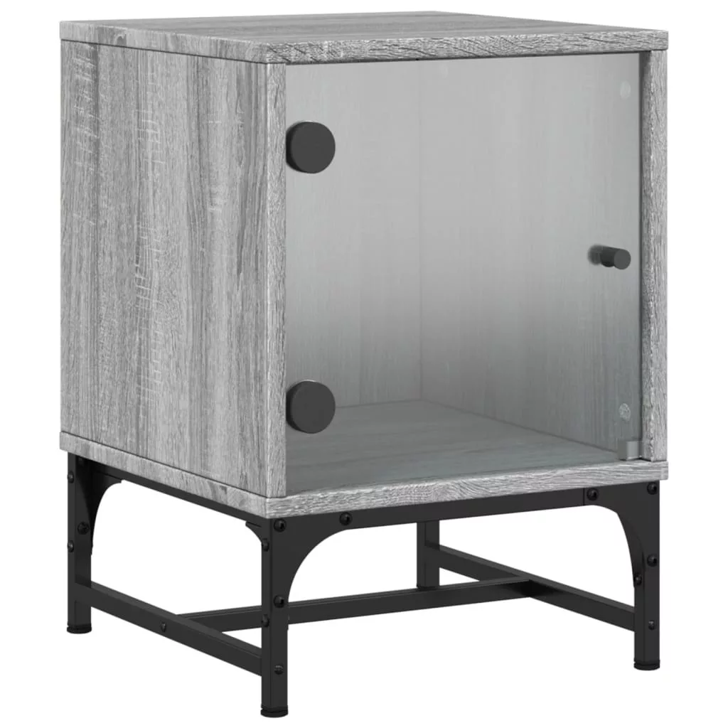 2 db szürke sonoma színű éjjeliszekrény üvegajtóval 35x37x50 cm