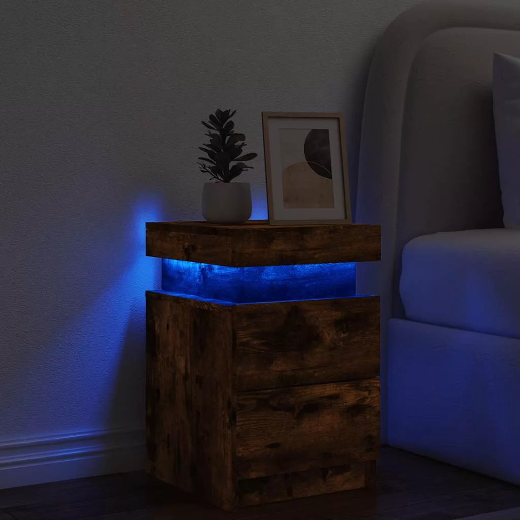 füstös tölgy színű éjjeliszekrény LED-világítással 35x39x55 cm