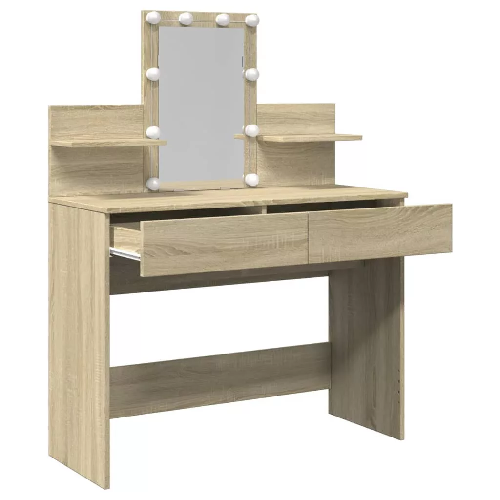 sonoma tölgy színű fésülködőasztal LED-del 100 x 40 x 130 cm