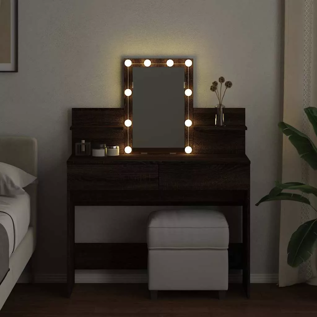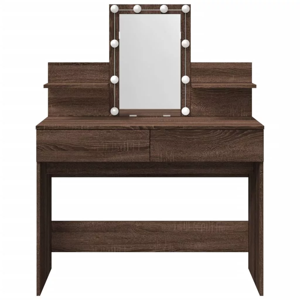 barna tölgy színű fésülködőasztal LED-del 100 x 40 x 130 cm