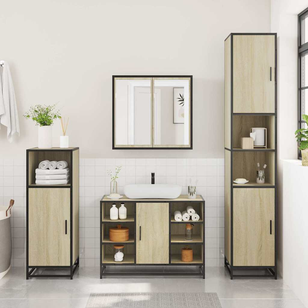 sonoma tölgy szerelt fa fürdőszobai mosdószekrény 80x33x60 cm