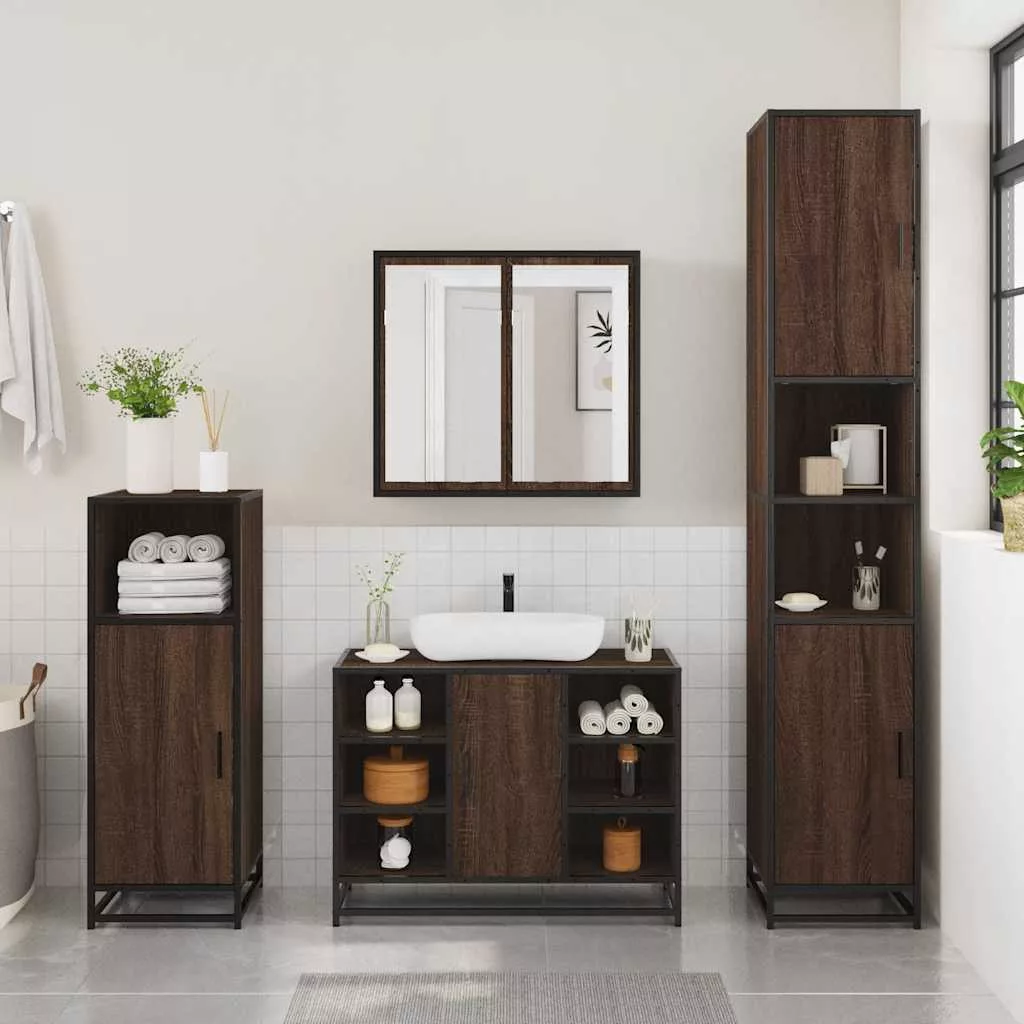 barna tölgy szerelt fa fürdőszobai mosdószekrény 80x33x60 cm