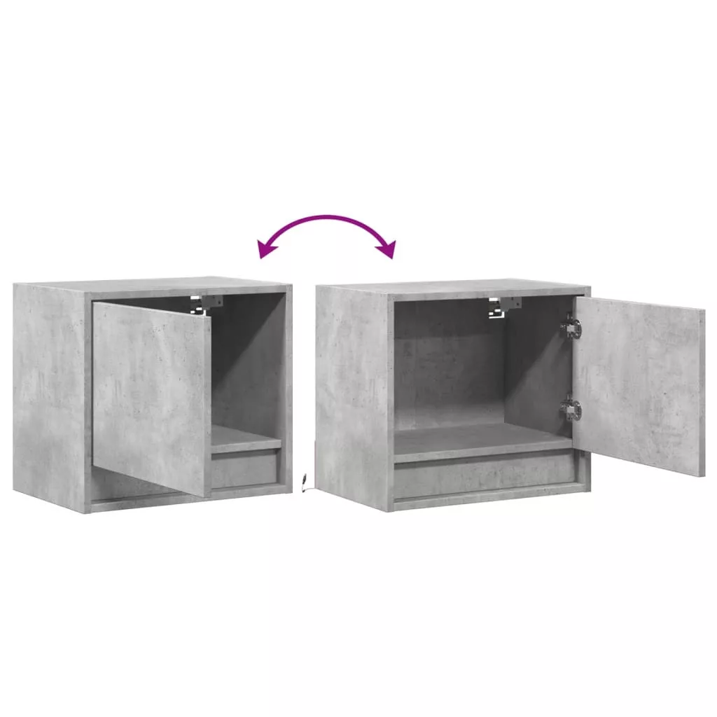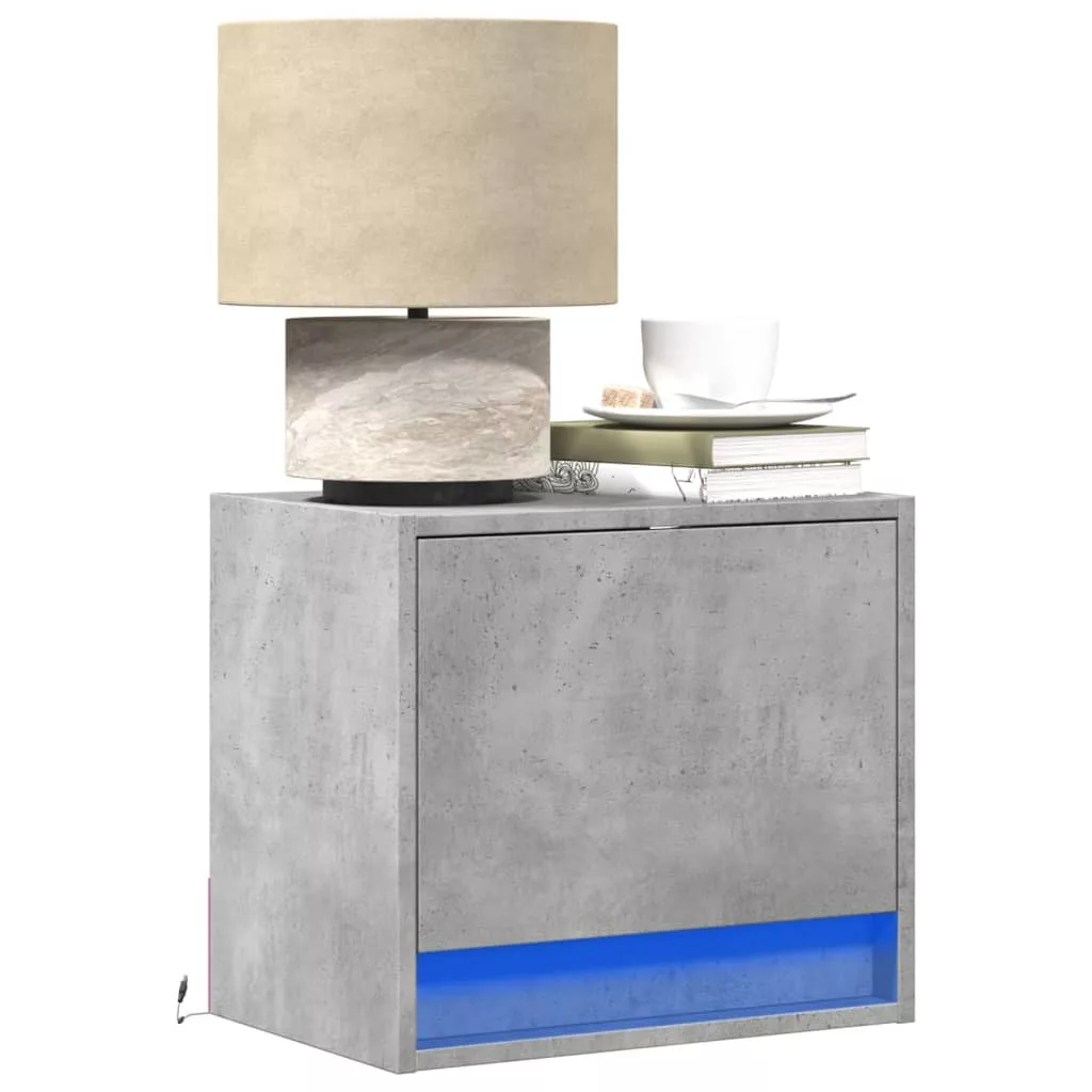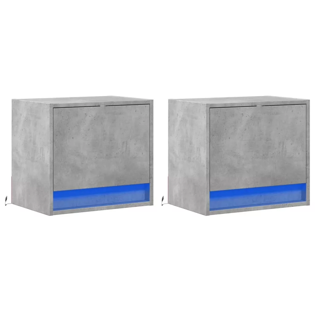 2 db betonszürke fali éjjeliszekrény LED-világítással