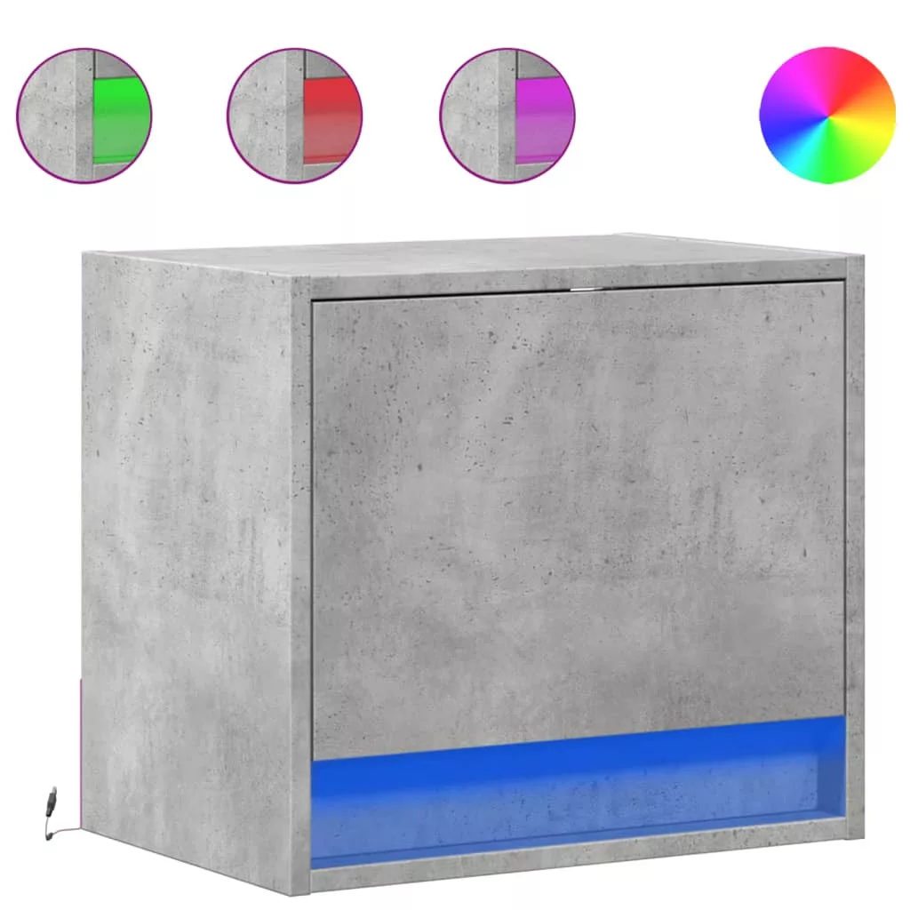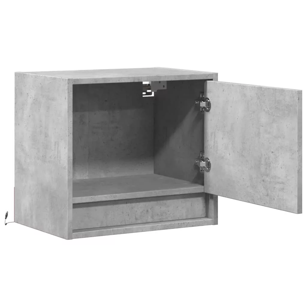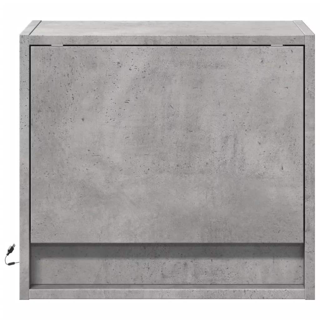 2 db betonszürke fali éjjeliszekrény LED-világítással