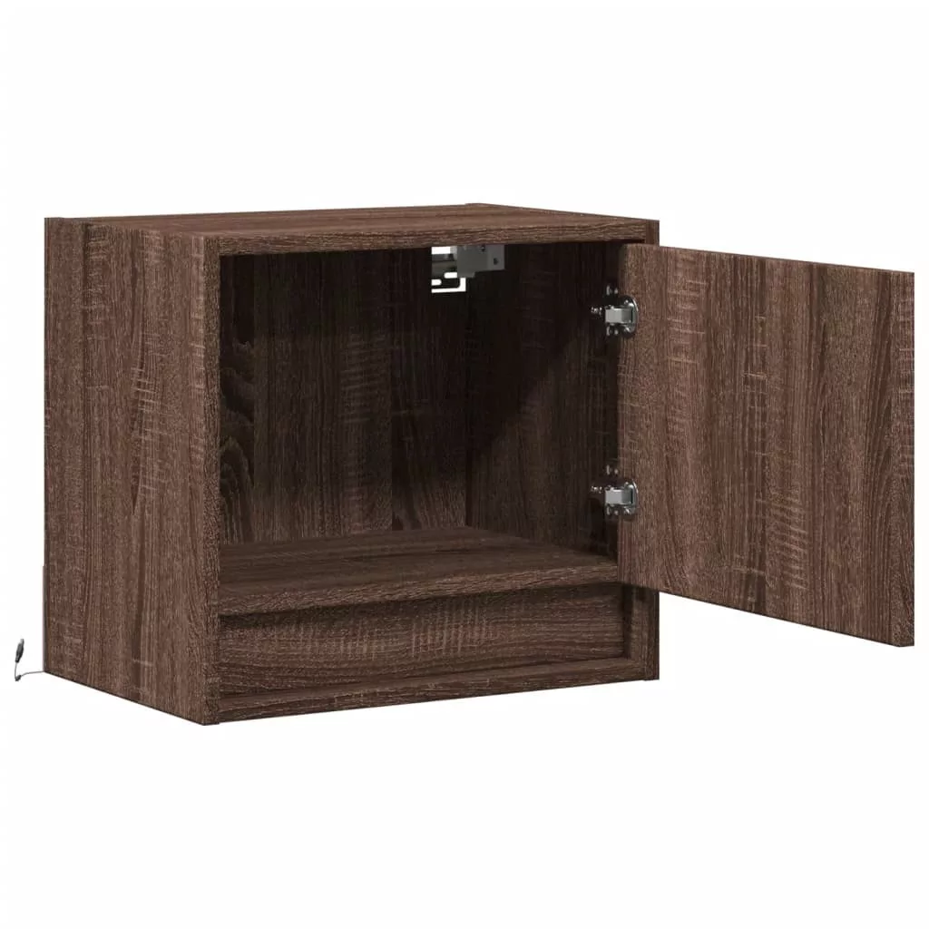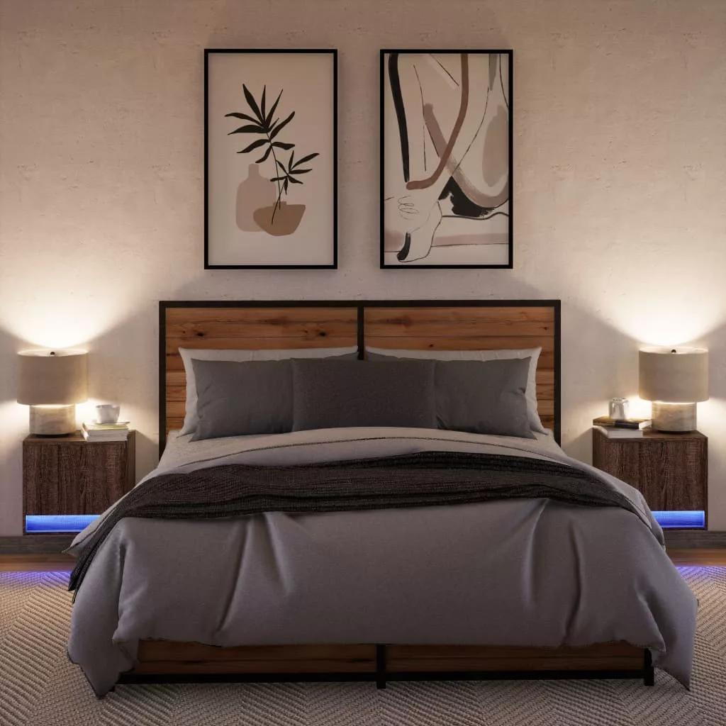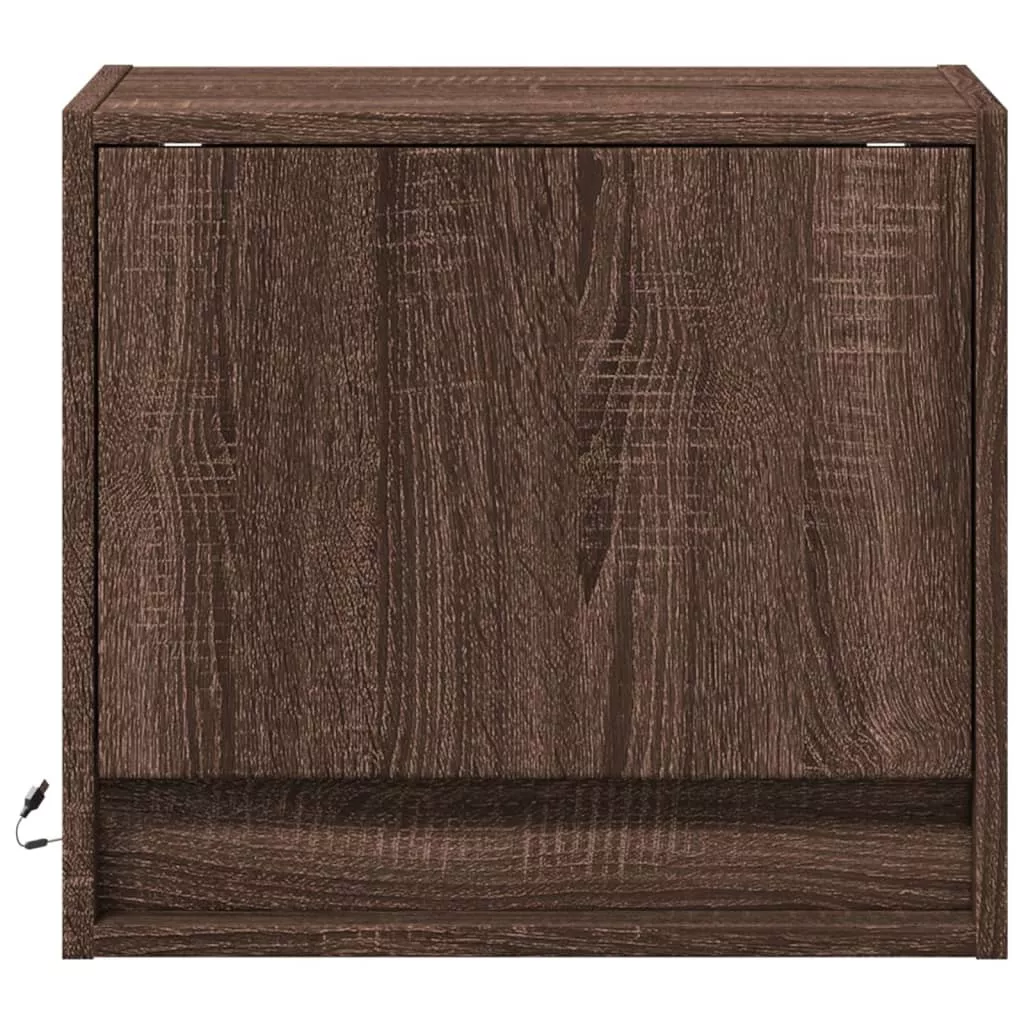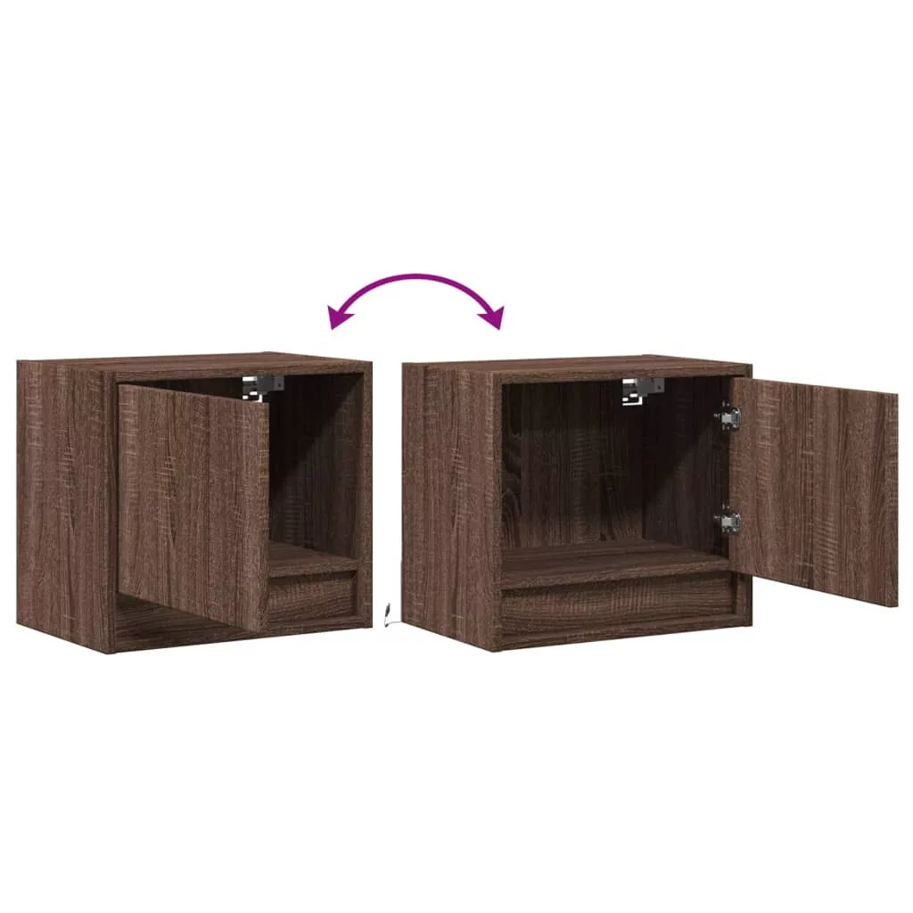2 db barna tölgy színű éjjeliszekrény LED-világítással