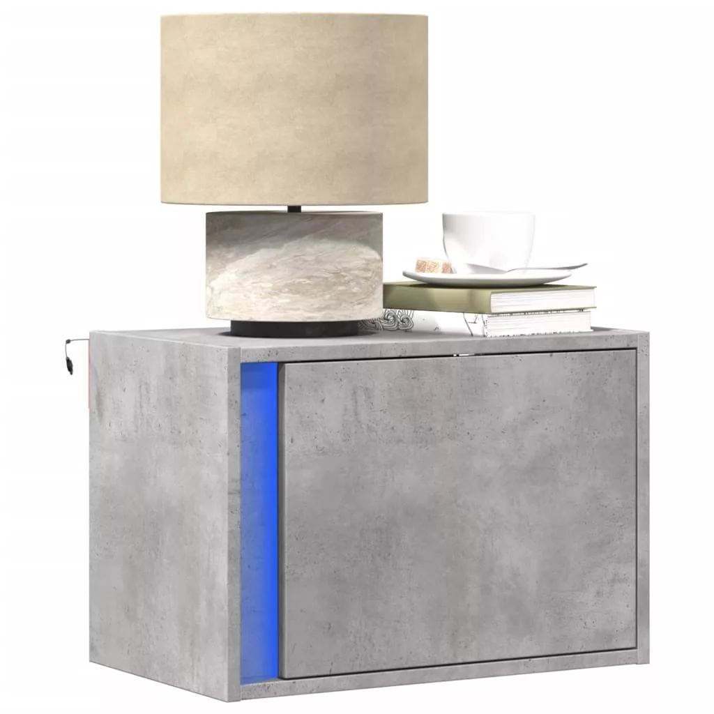 betonszürke falra szerelhető éjjeliszekrény LED-világítással