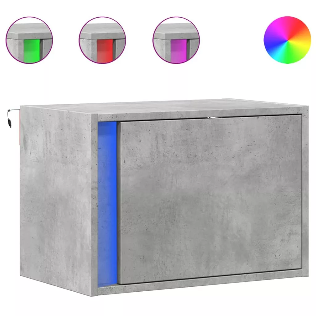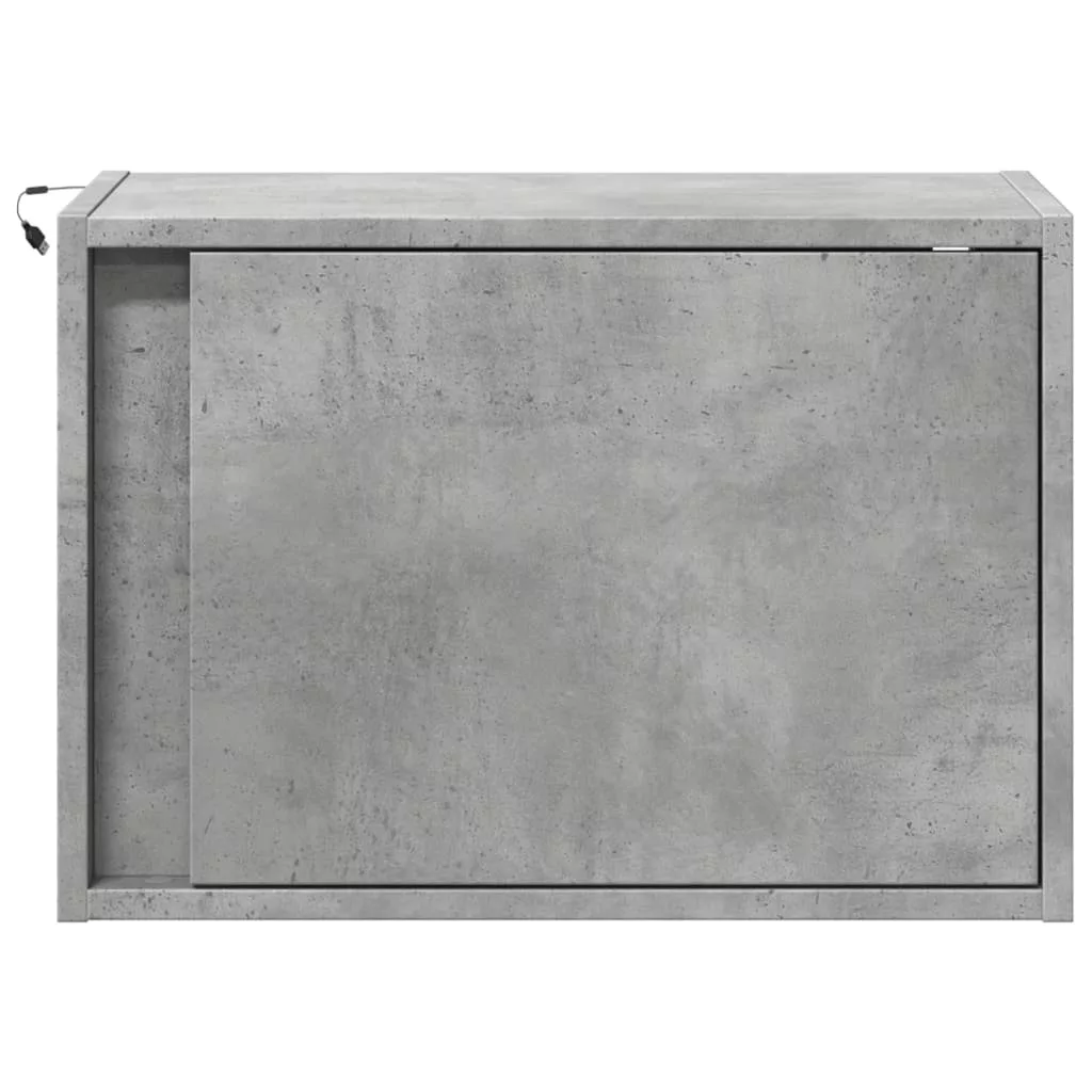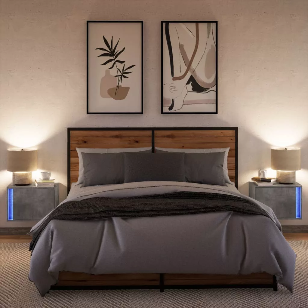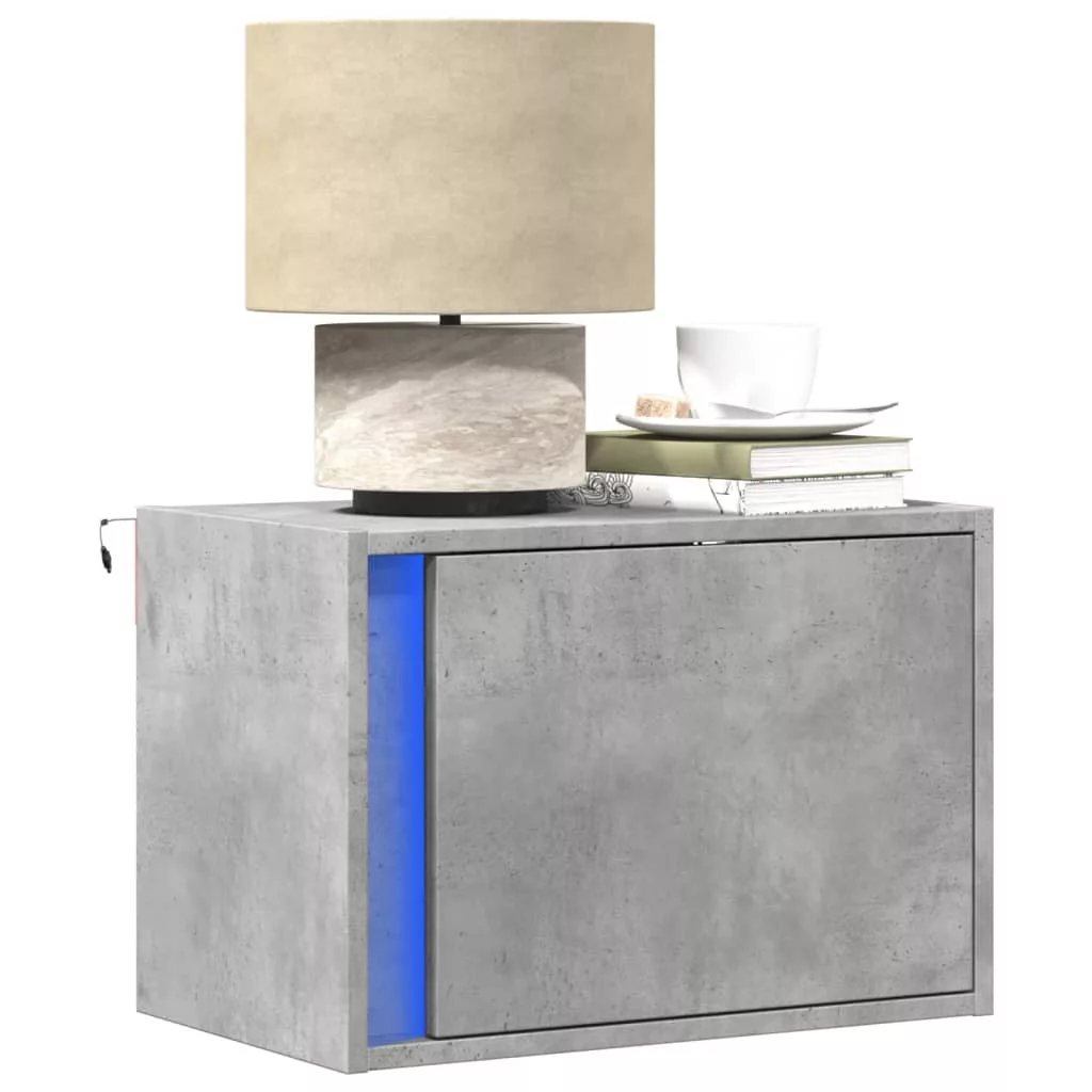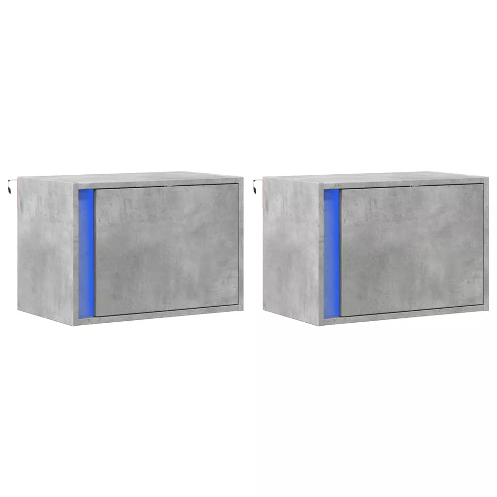 2 db betonszürke fali éjjeliszekrény LED-világítással