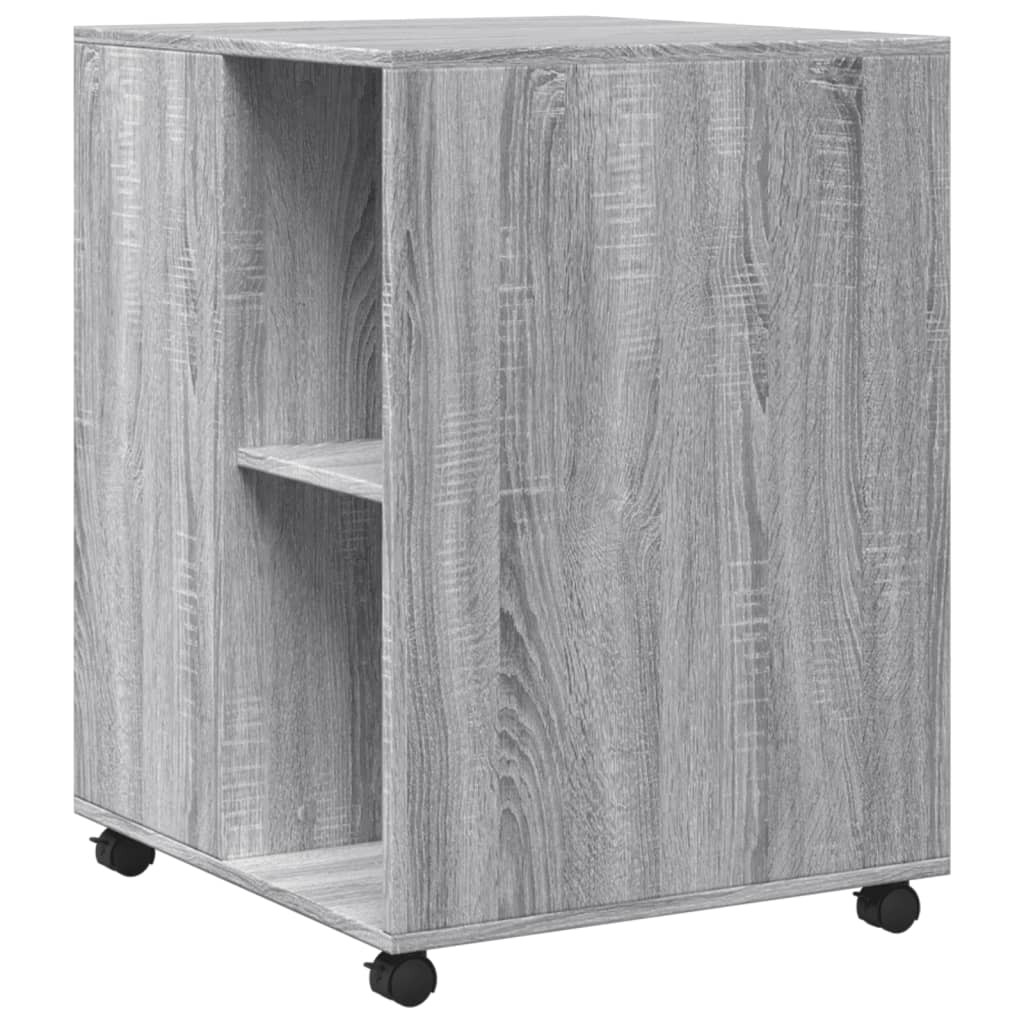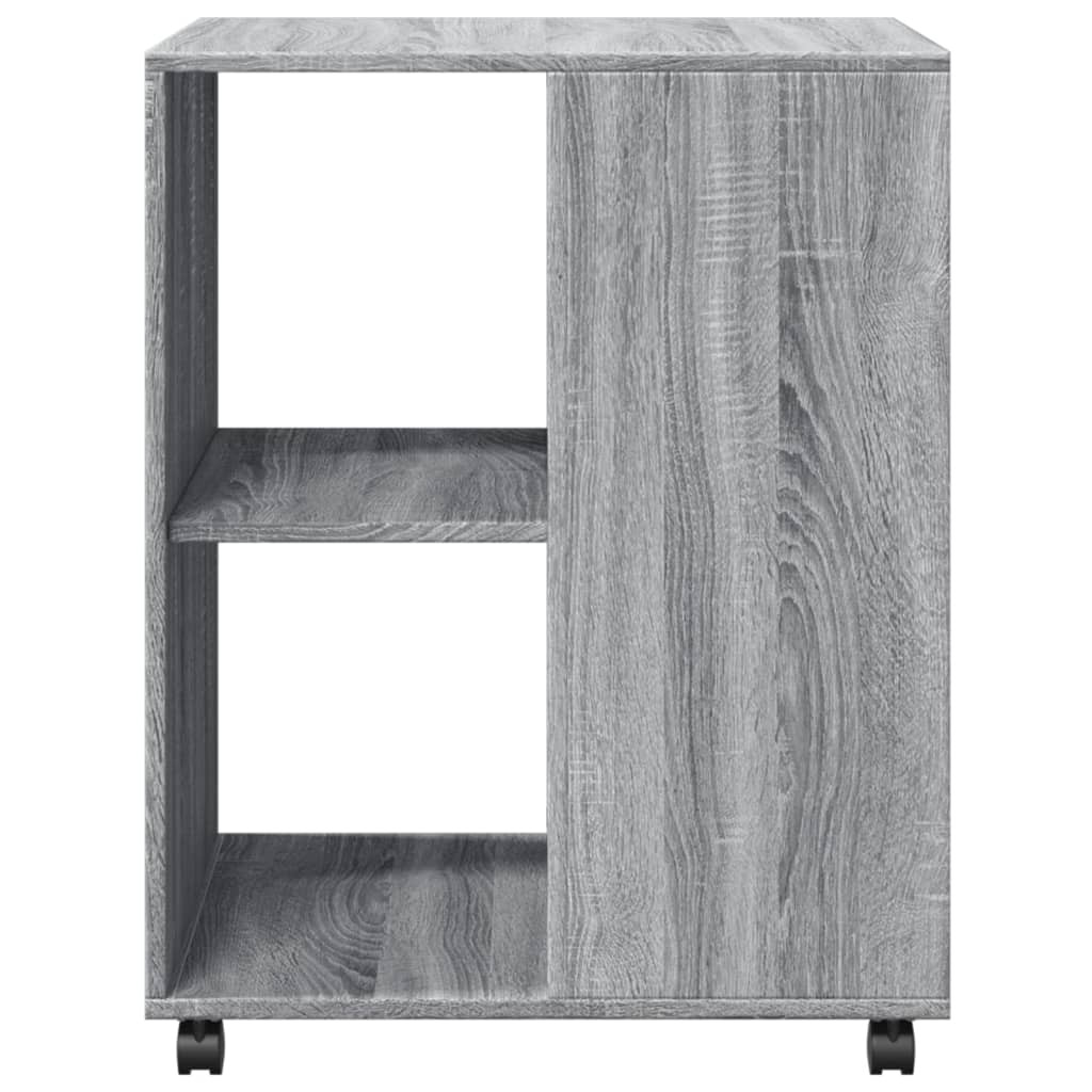 szürke sonoma színű szerelt fa kisasztal kerekekkel 55x60x78 cm