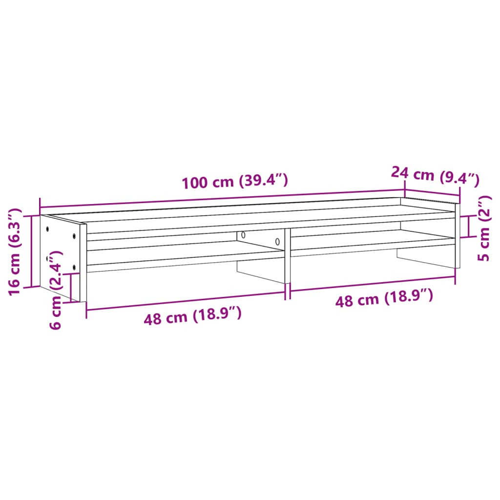 betonszürke szerelt fa monitorállvány 100 x 24 x 16 cm