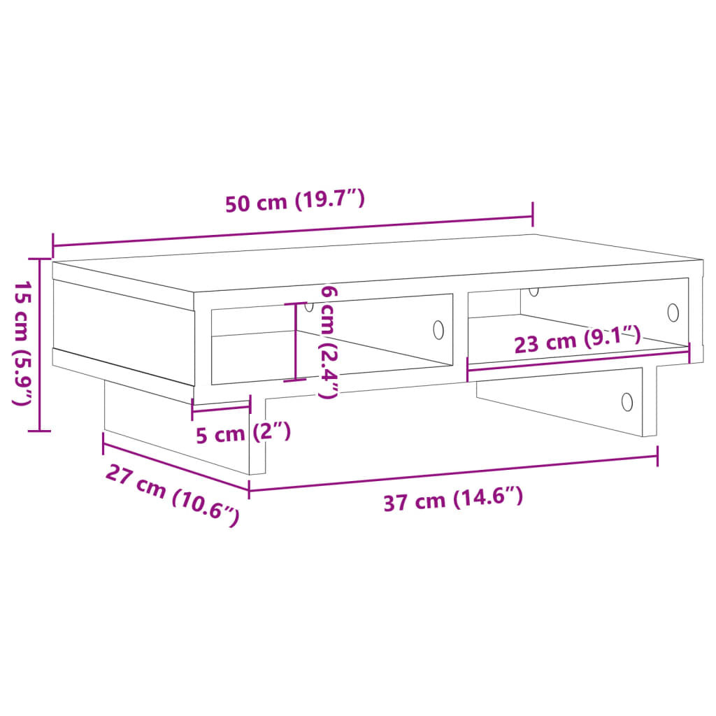 betonszürke szerelt fa monitorállvány 50 x 27 x 15 cm