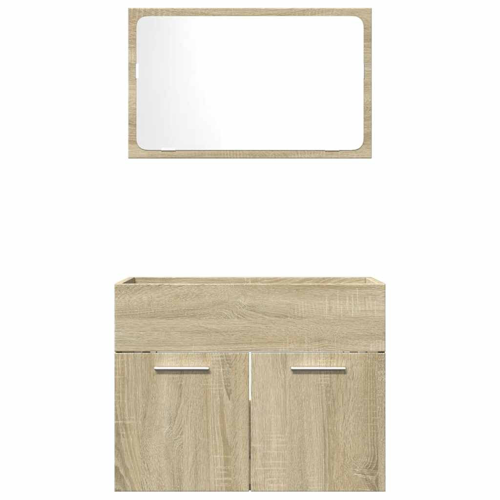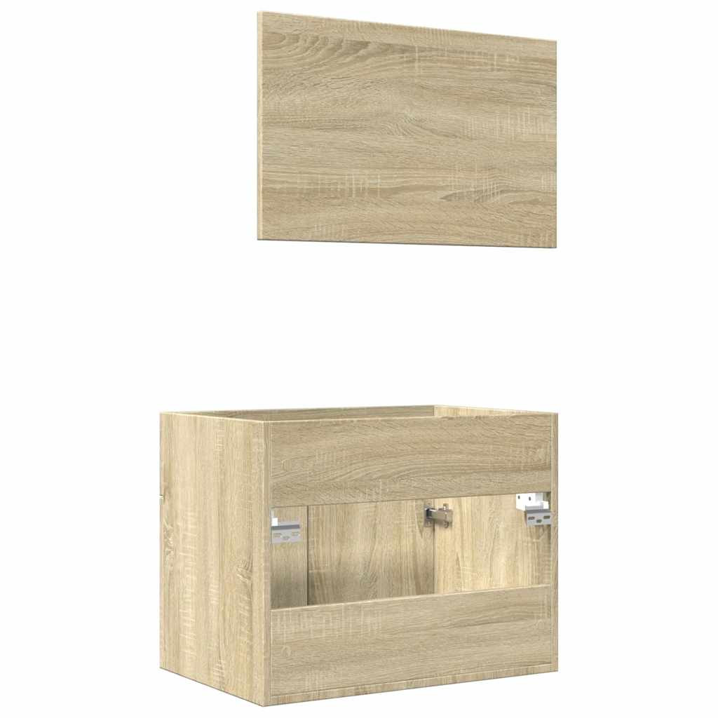 2 részes sonoma tölgyszínű szerelt fa fürdőszobai bútorszett
