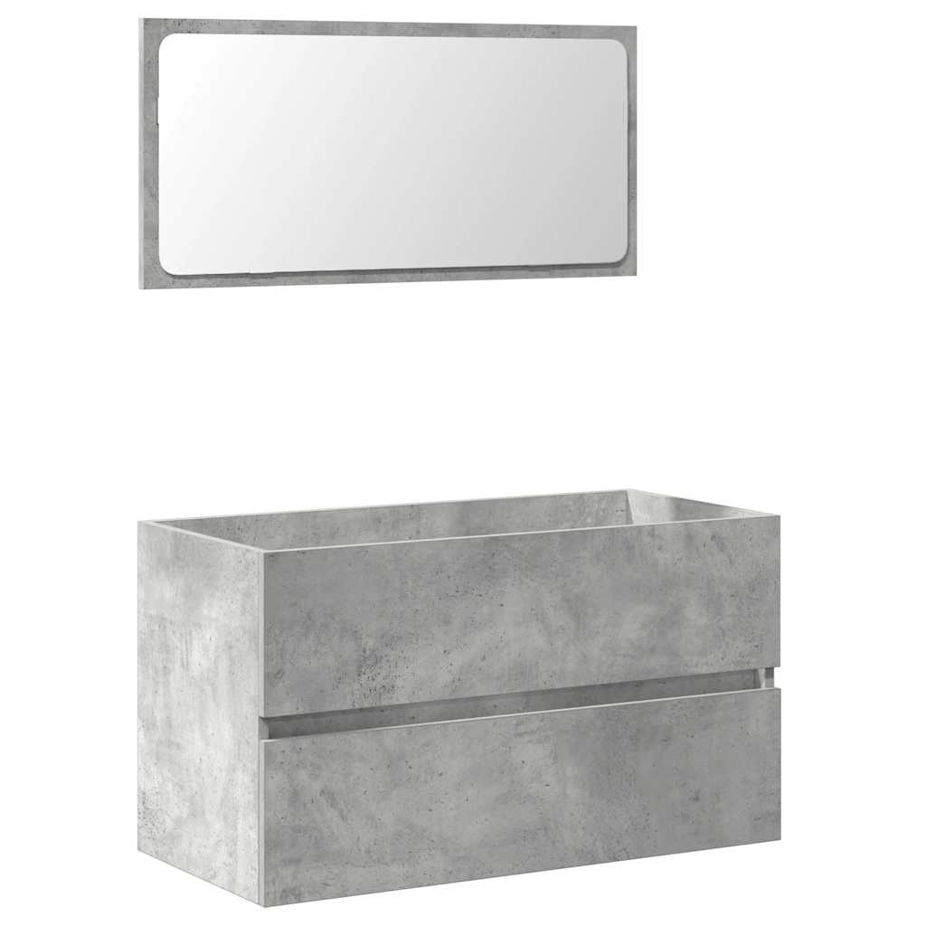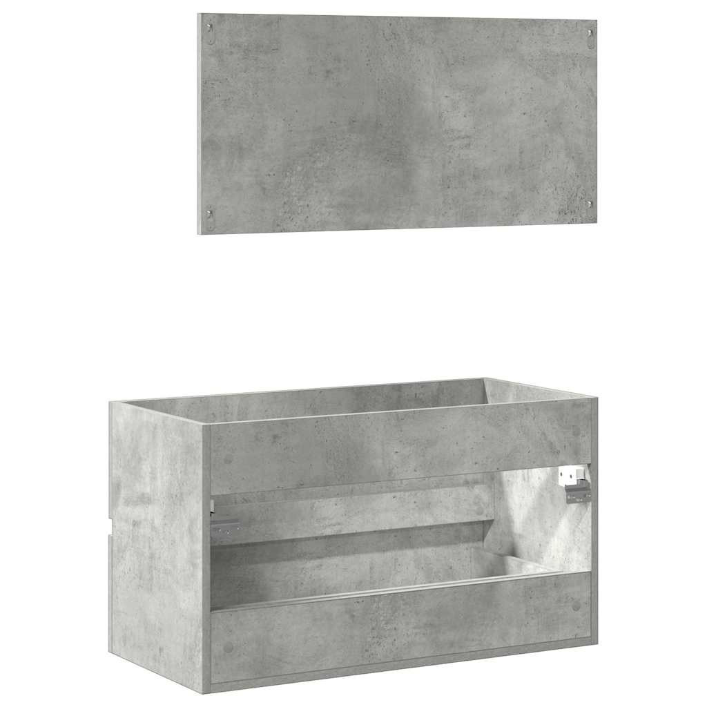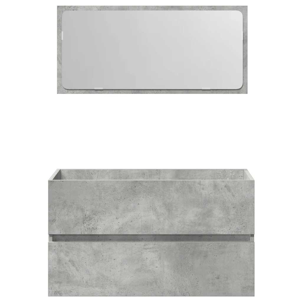 betonszürke szerelt fa fürdőszobaszekrény tükörrel