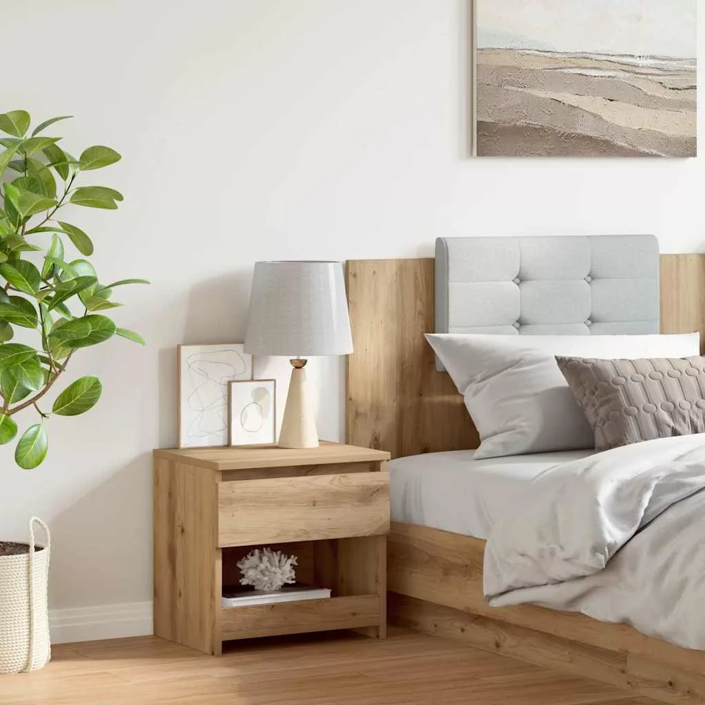 Ez az elegáns kialakítású éjjeliszekrény otthona időtálló kiegészítője. Stabil és tartós anyag: A szerelt fa tartós és stabil anyag sima felülettel, amely ellenáll a nedvességnek, a vetemedésnek és a hasadásnak, így megbízható választás különféle célokhoz.Bőséges tárolóhely: Az 1 fiókkal és 1 rekesszel rendelkező éjjeliszekrény bőséges helyet biztosít magazinjai, könyvei, távirányítói és egyéb apró tárgyai kézközelben történő rendezett tárolásához.Stabil felső: Az éjjeliszekrény stabil teteje tökéletesen alkalmas asztali lámpák, ébresztőórák, könyvek, képkeretek, kis cserepes növények, dekorációk vagy más alapvető dolgok elhelyezésére.Könnyen karbantartható: A sima felületének köszönhetően az éjjeliszekrény könnyen tisztítható nedves ruhával, és kevesebb karbantartást igényel.
