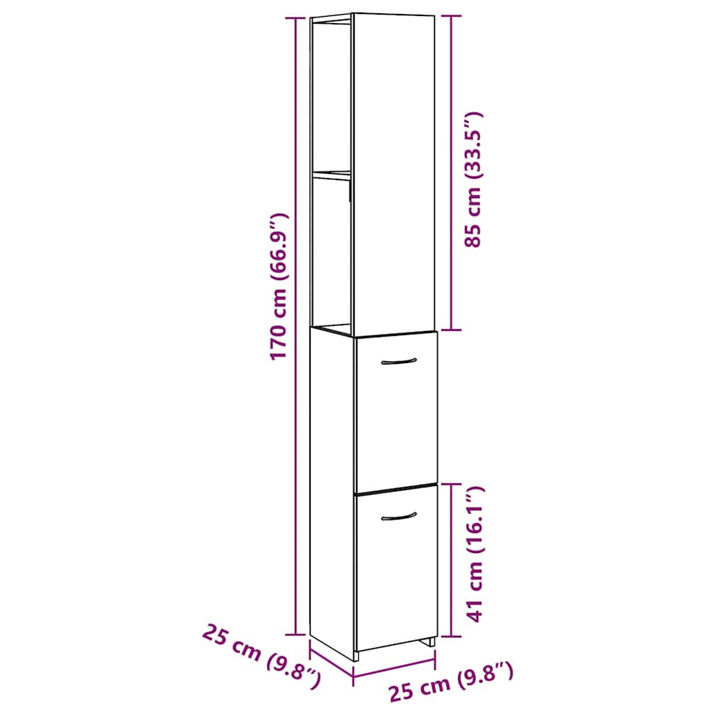 kézműves tölgy színű szerelt fa fürdőszobaszekrény 25x25x170 cm