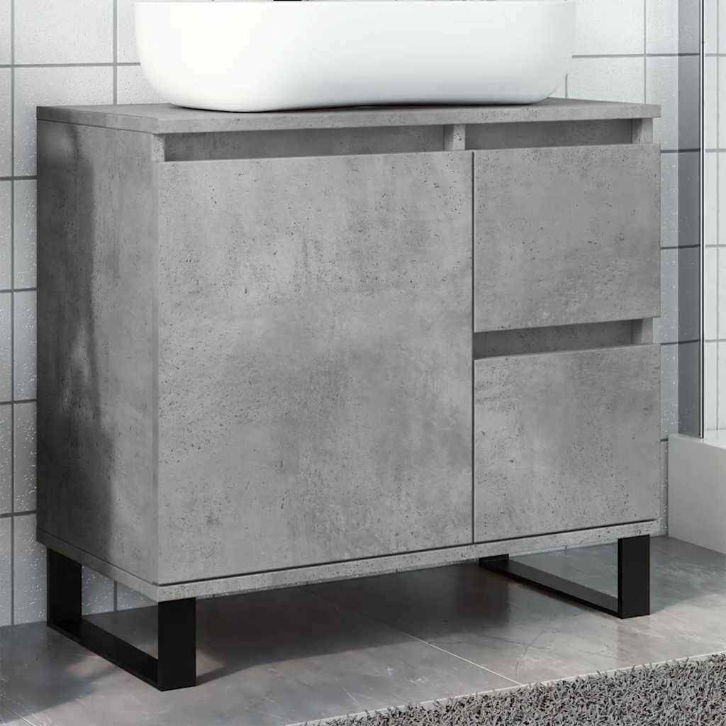 betonszürke szerelt fa fürdőszobai mosdószekrény 65x33x60 cm