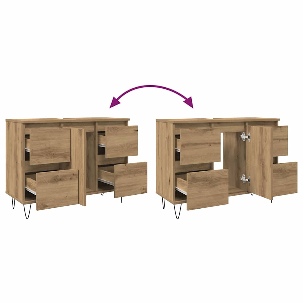 kézműves tölgy színű szerelt fa mosdószekrény 80 x 33 x 60 cm