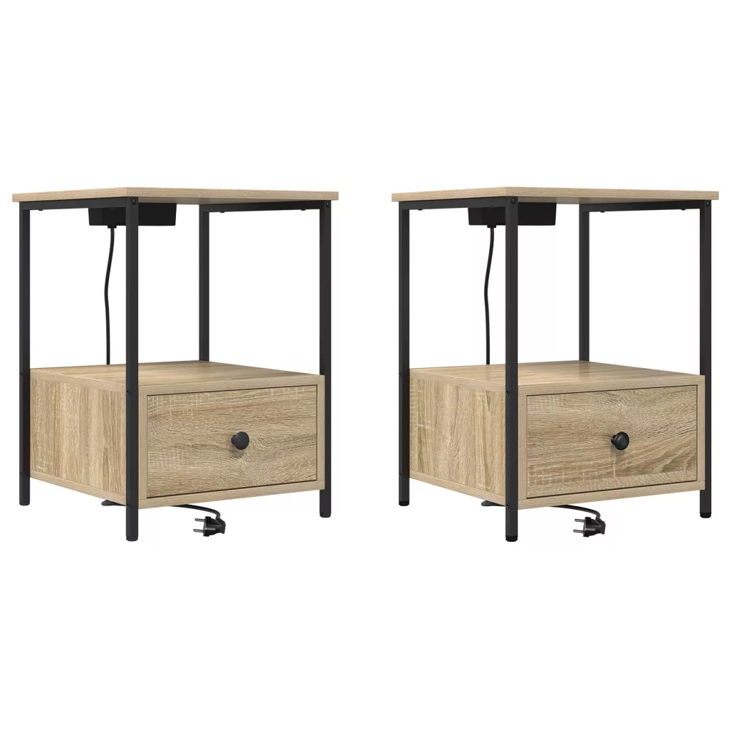 Éjjeliszekrény Töltőállomással 2 pcs sonoma tölgy Faanyag
