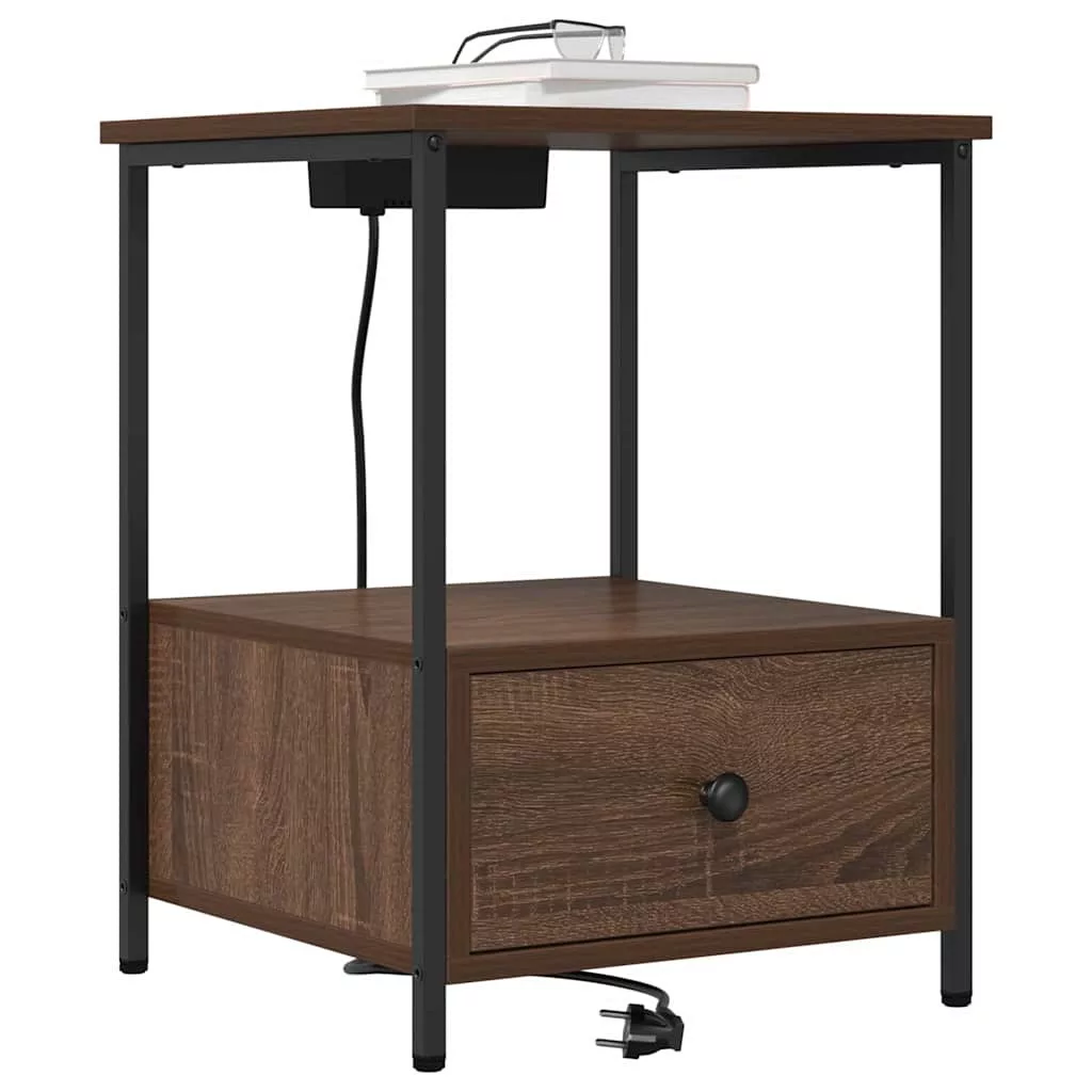 Éjjeliszekrény Töltőállomással 2 pcs barna tölgy Faanyag