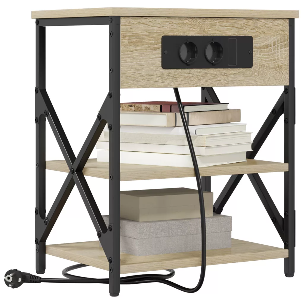 Éjjeliszekrény Töltőállomással polcokkal tárolóval sonoma tölgy Faanyag