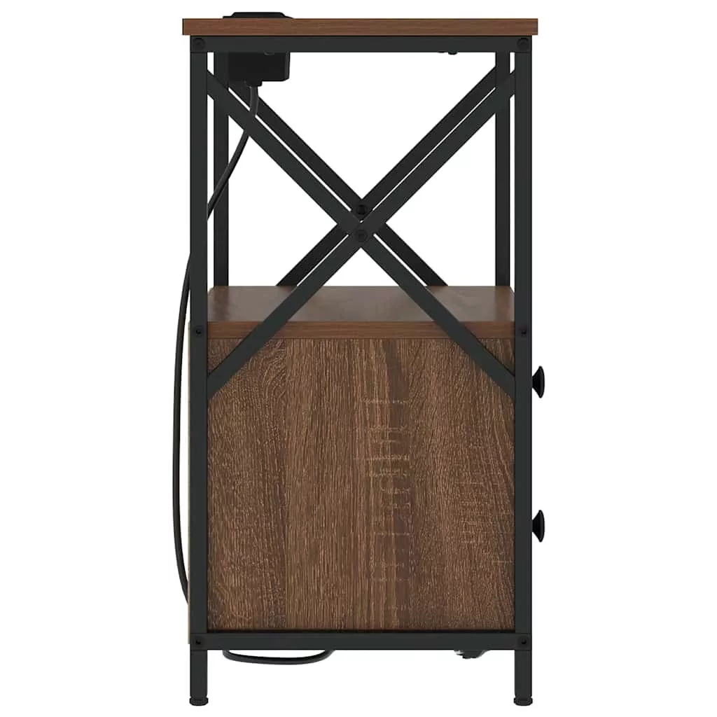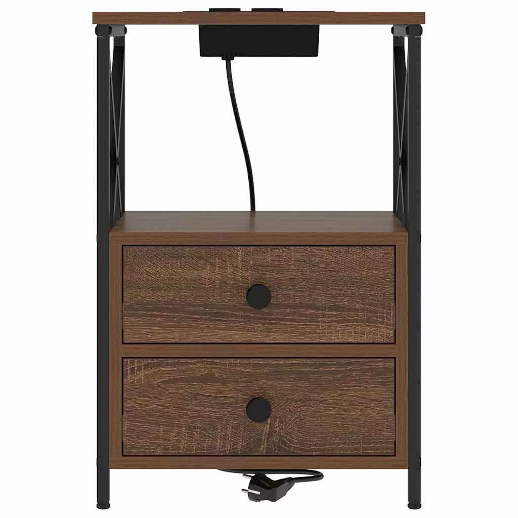 Éjjeliszekrény Töltőállomással fiókkal barna tölgy Faanyag