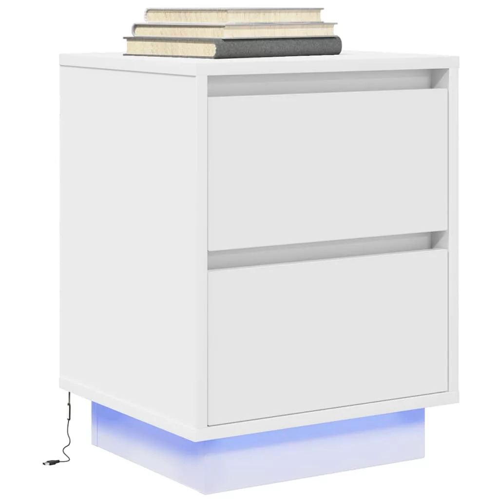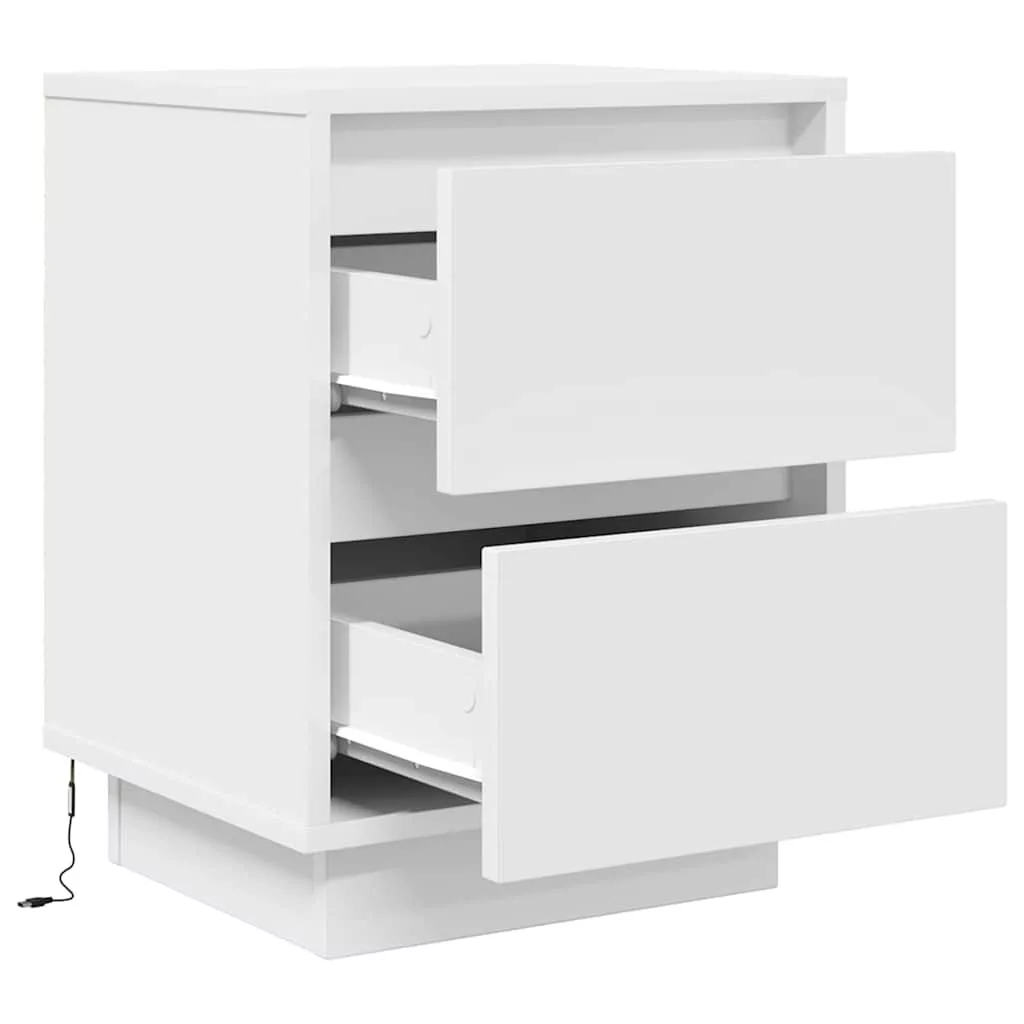 2 db fehér éjjeliszekrények LED világítással 38x34x50 cm