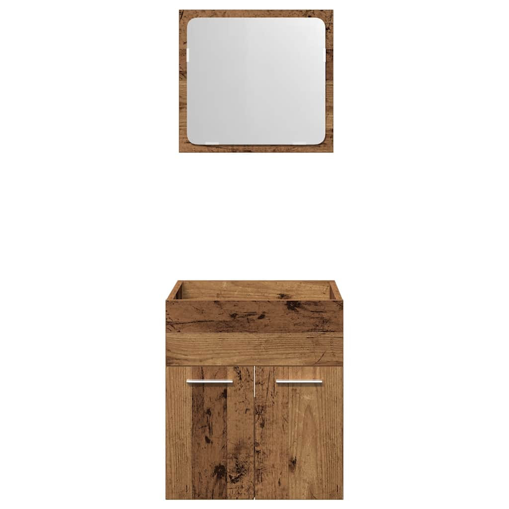 2 részes antik fa színű szerelt fa fürdőszobai bútorszett