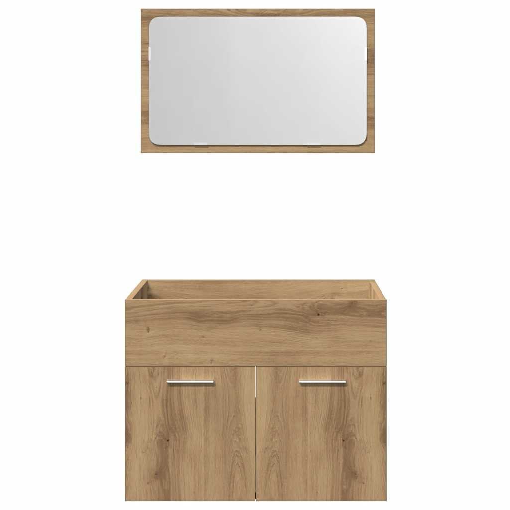 2 részes kézműves tölgy színű szerelt fa fürdőszobai bútorszett