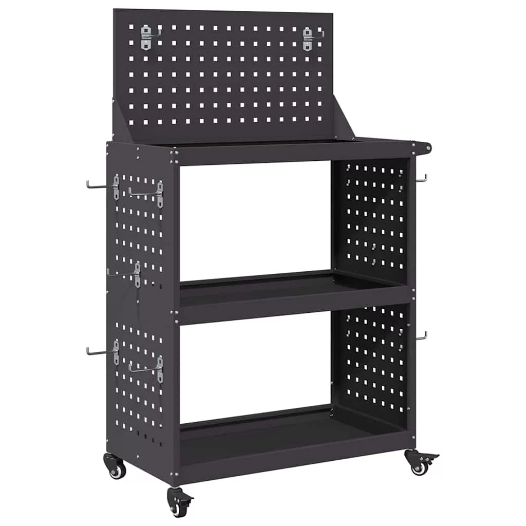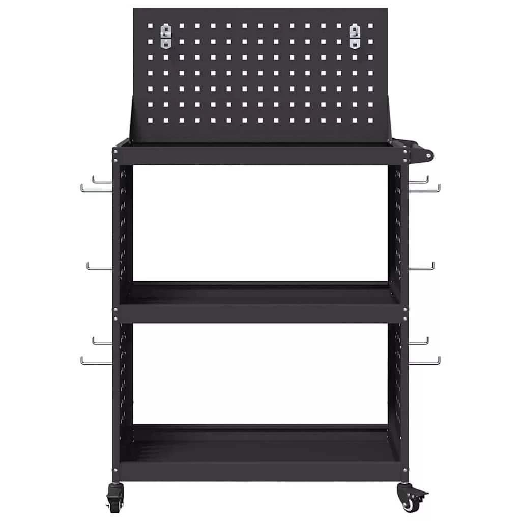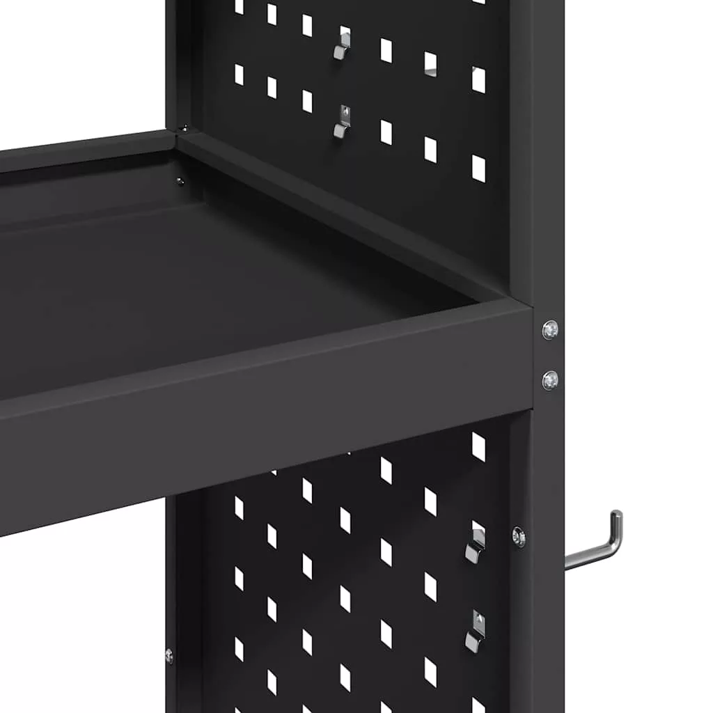 Eszköz Kocsi polcokkal kerékkel tárolóval Fekete 65 x 35 x 111 cm Fém