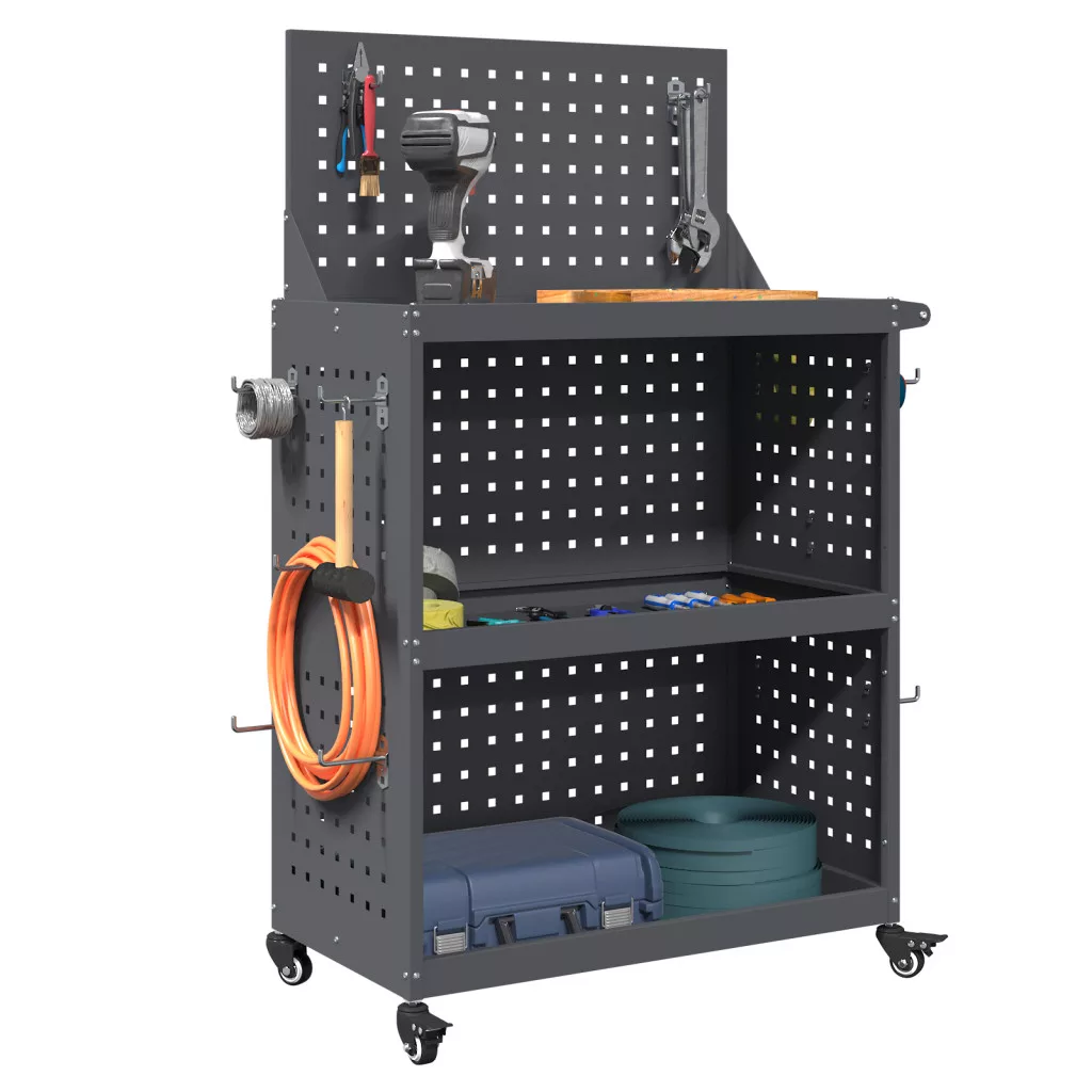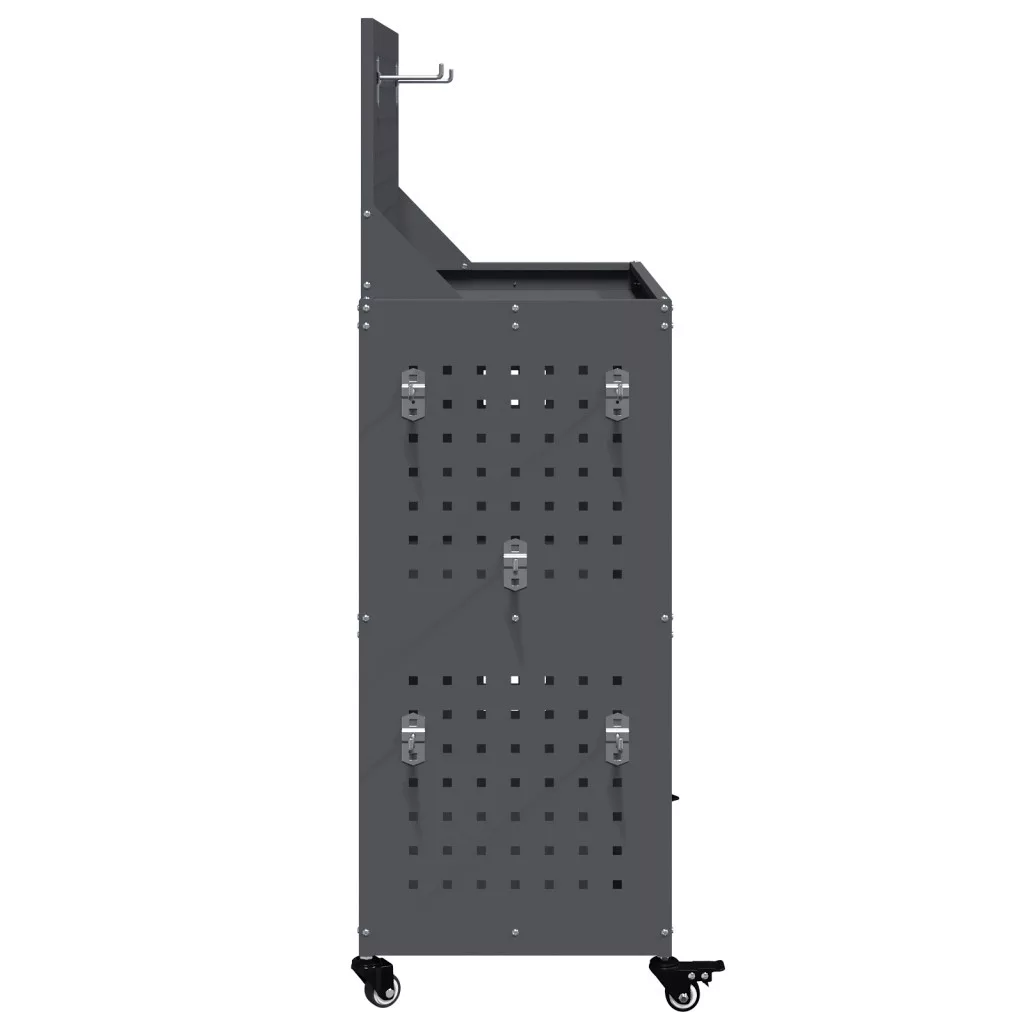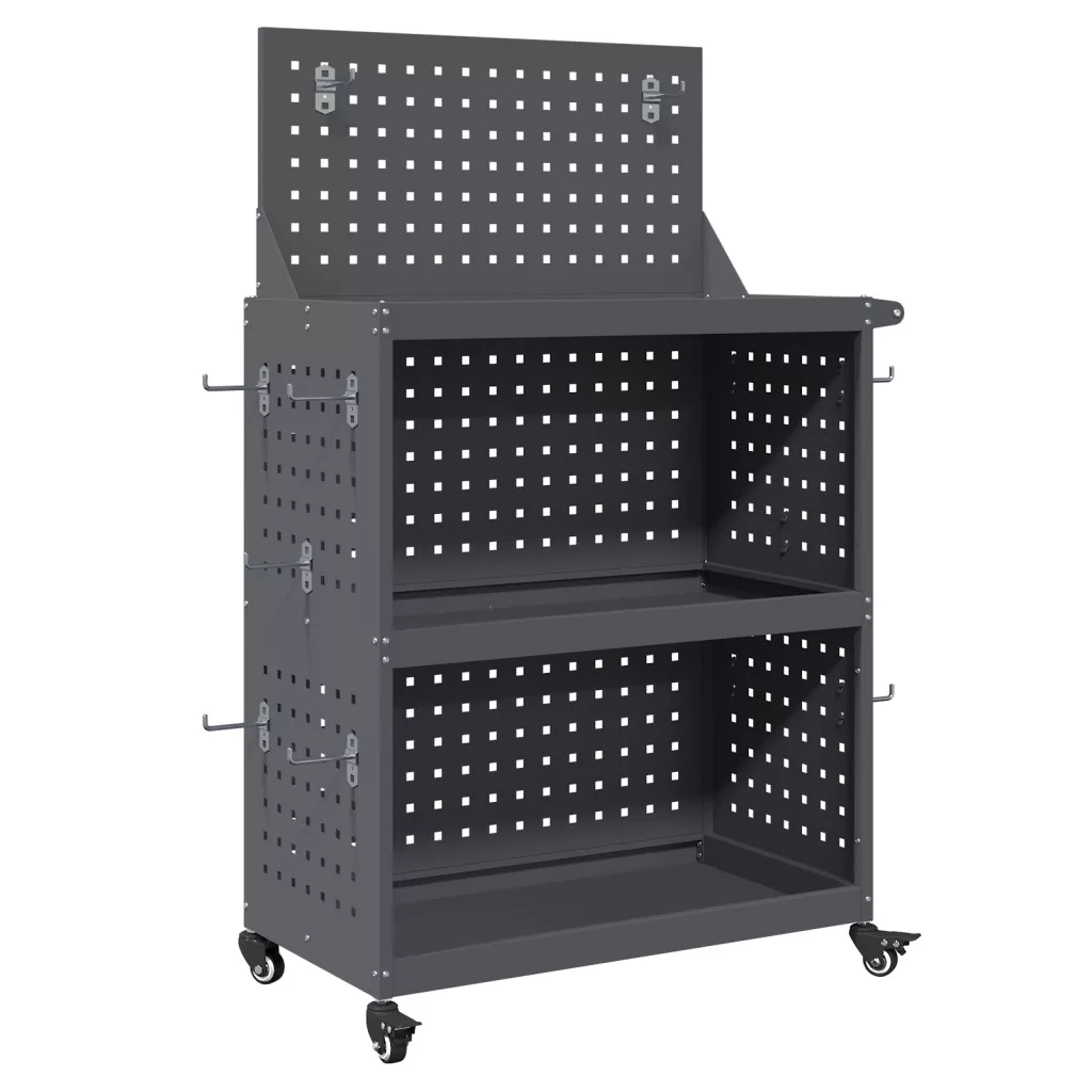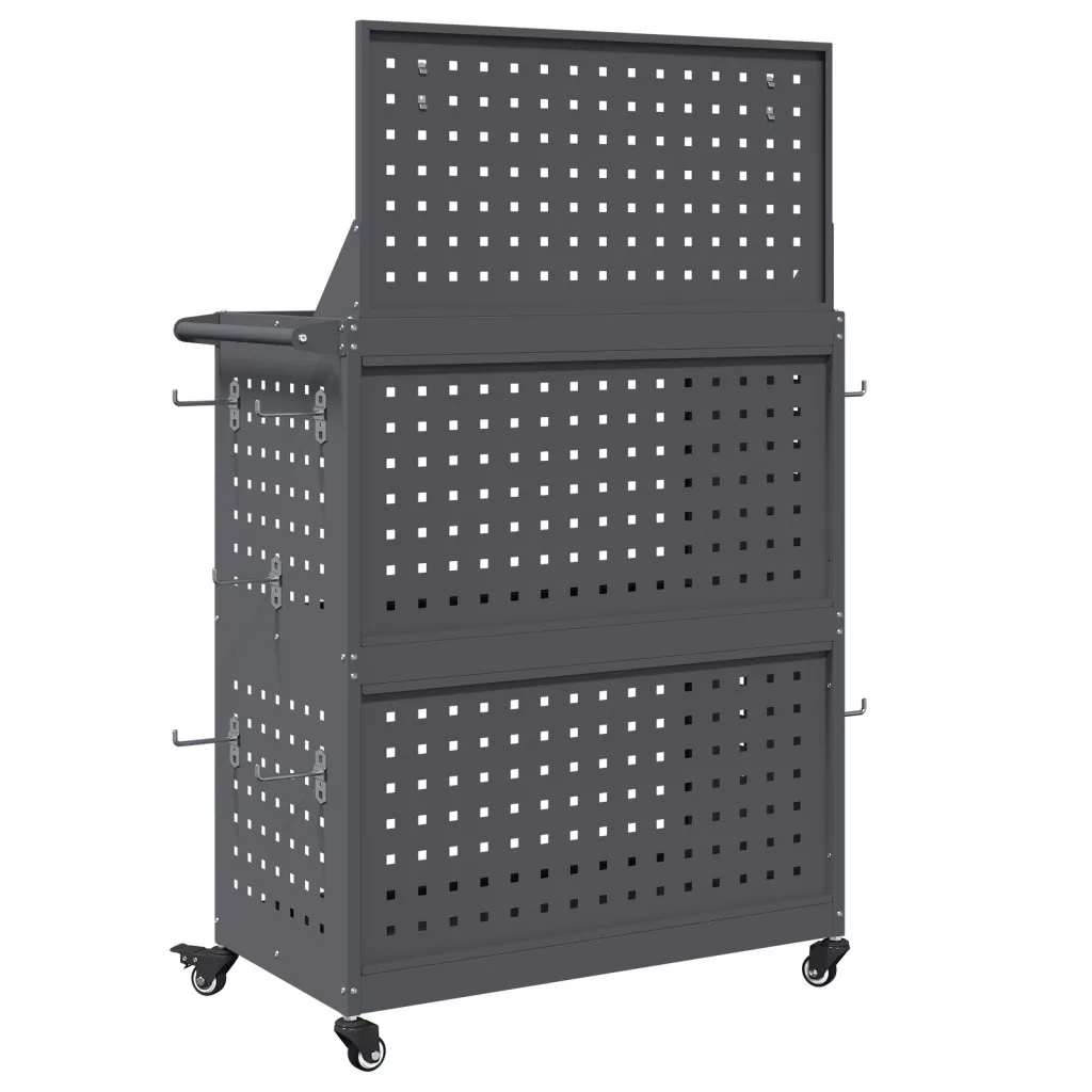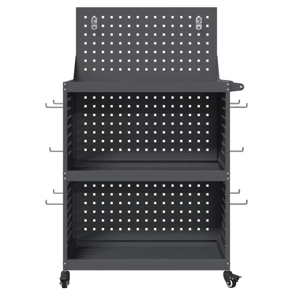 Ez a kemény eszköztároló kocsi tökéletesen illik bármilyen műhelybe vagy garázsba, és menő ipari stílusa mellett nagyon praktikus is. Rengeteg tárolóhelye van, a matt felülete pedig elegánssá varázsolja az acélt. Ha kereskedő vagy, vagy csak szeretsz DIY-zni, ez az organizáló segít, hogy okosabban tudj dolgozni, minden eszközöd kéznél és szépen elrendezve. Acél konstrukció: Hidegen húzott acélból készült, bírja a nehéz terheket, kiválóan tárolhatod benne az eszközeidet és felszereléseidet. A matt felület modern kinézetet ad, így mindenhol jól mutat. Masszív polcok: Szilárd fémpolcokkal, ez a kocsi rengeteget el bír tartani, a nagy teljesítményű eszközöktől a kisebb cuccokig. Az acél polcok tartósak, megőrzik formájukat még a legelfoglaltabb műhelyekben is. Zárható kerekek: A négy kerék 360°-ban pörög, így könnyen mozgathatod, két kerék zárható, hogy megakadályozza a kocsi elgurulását. Ez biztonságban és stabilan tart mindent munka közben. Testreszabható tárolás: 12 horgot tartalmaz, amivel úgy akaszthatod fel az eszközeidet, ahogy szeretnéd. Ez segít rendben tartani a munkaterületed, biztosítja, hogy minden kéznél legyen. Könnyű karbantartás: A kocsi karbantartása pofon egyszerű. Csak töröld le a fémpartokat nedves ruhával, és szárítsd meg. Kerüld a durva tisztítószereket, hogy a felület szép maradjon és sokáig bírja.