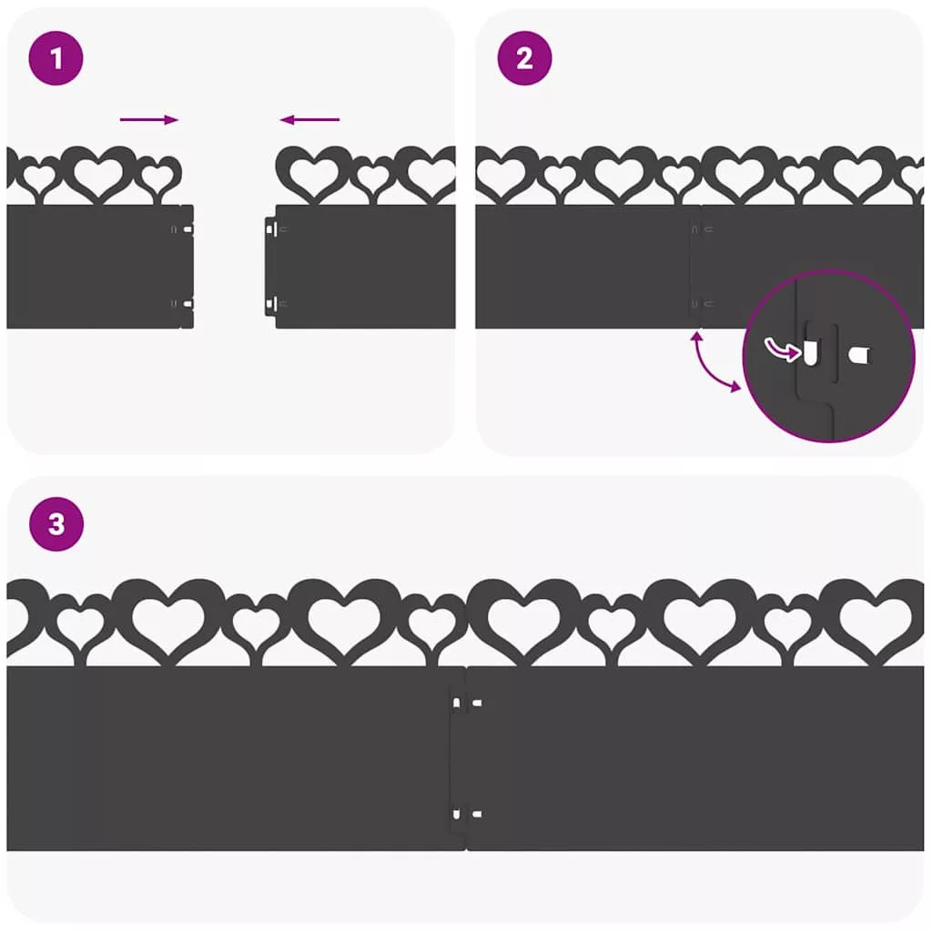 Gyepszegélyek 10 pcs Fekete 103 x 0,05 x 22 cm Acél