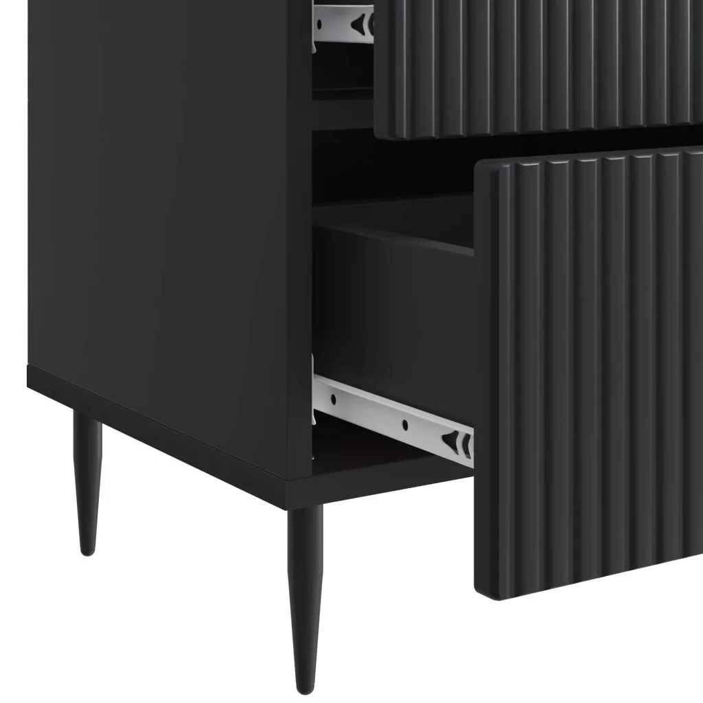 Ez a Modern Éjjeli Szekrény feldobja a hálószobádat egy kis vintage stílussal. Tökéletesen illik mindenféle hálószoba dizájnhoz, és remek helyet ad a személyes cuccoknak, lámpáknak vagy ébresztőóráknak, így garantáltan rendben tartja az alvóhelyedet. Diszkrét bájával nemcsak jól tárol, de felerősíti a szoba hangulatát is e klasszikus érintéssel. Műanyag borítás A szekrény teljesen műanyagból készült, így nagyon masszív és tartós. Elismert a megbízhatóságáról és a napi használatnak való ellenállásáról, sokáig kitart. Sima felülete egyszerűvé teszi a takarítást. Bőséges tárolás Tágas fiókjának köszönhetően ez az éjjeli szekrény rengeteg helyet ad a napi szükségleteidnek, mint például könyvek, szemüvegek, vagy elektronikai eszközök. Minden cuccod rendezve és könnyen elérhető helyen lesz, így a hálószobád is tisztán tartható. Fém keskenyedő lábak Fém lábai szilárd támaszt nyújtanak. Modern, elegáns megjelenése mellett azok a lábak úgy lettek tervezve, hogy bírják a terhelést, miközben a strapabíró szerkezetet megőrzik, ami ideálissá teszi mindennapi használatra. Rúd fogantyúk Elegáns rúd fogantyúk díszítik a fiókokat, modern kinézetet és praktikus használatot biztosítva. Ezek a hosszú, egyenes fogantyúk segítenek a fiókok egyszerű nyitásában és zárásában. Vintage stílus A régi korszak báját tükrözve ez az éjjeli szekrény vintage hangulatot ad a hálószobádnak. Klasszikus dizájnja vonzó, ha a modern funkciót ötvözni szeretnéd az antik eleganciával, igazán stílusossá téve az alvóhelyedet.
