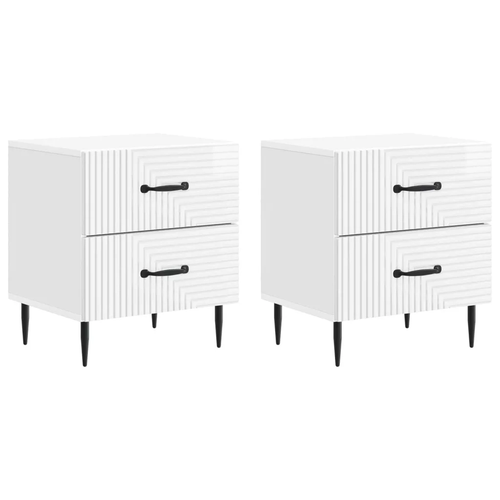 Éjjeliszekrény 2 pcs Magasfényű Fehér 43 x 34,5 x 47,5 cm