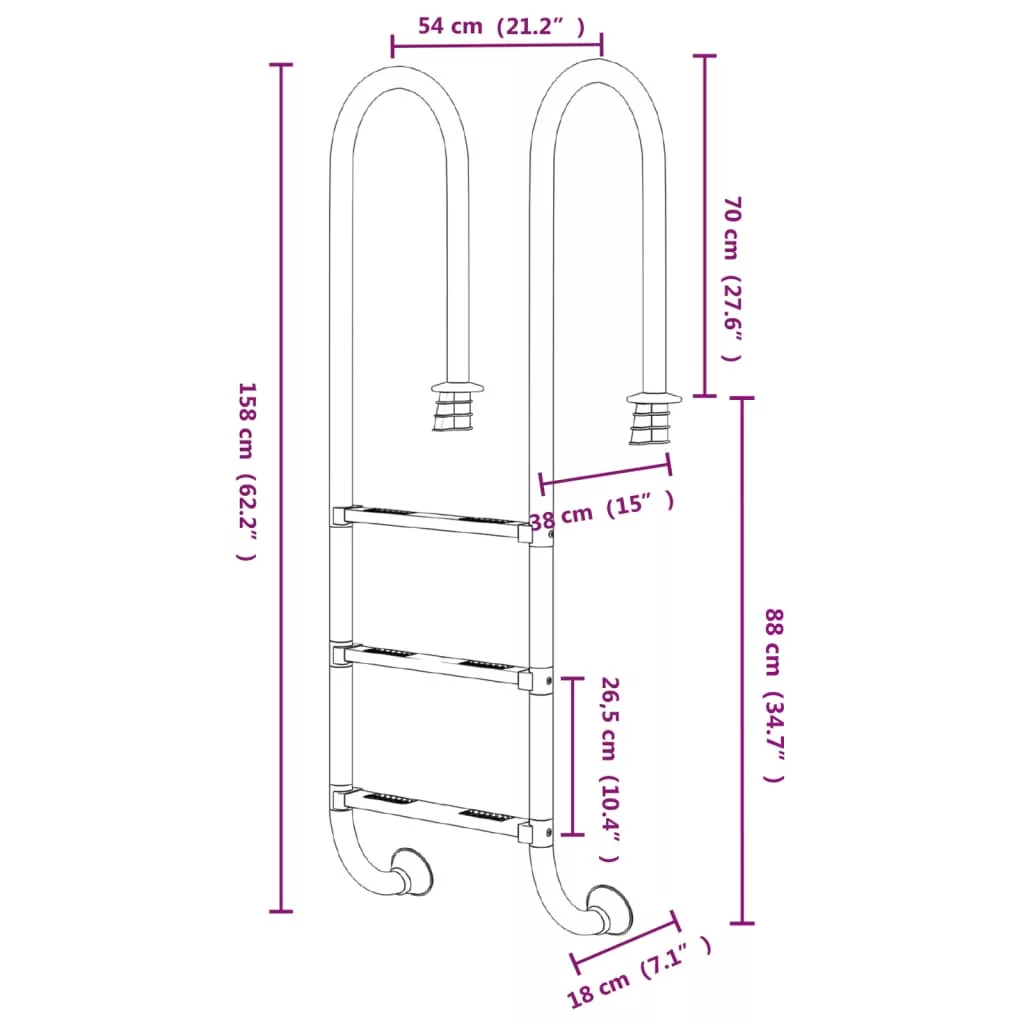 304-es rozsdamentes acél medencelétra 54 x 38 x 158 cm