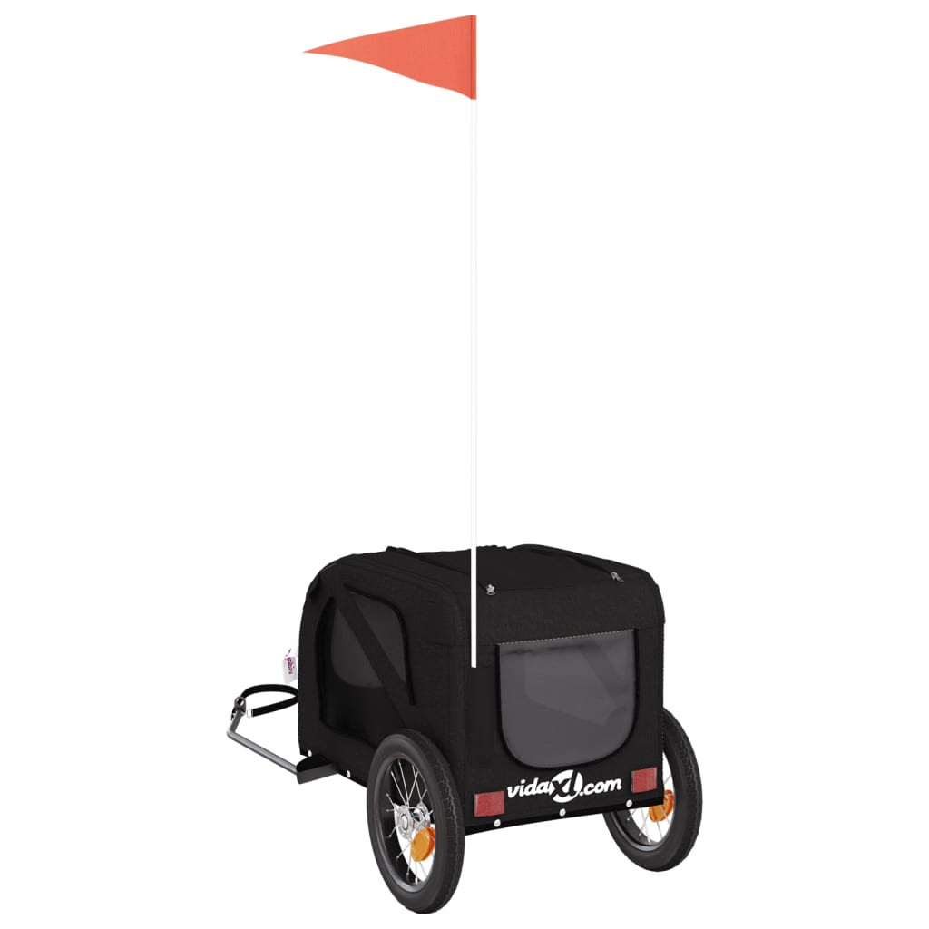 fekete oxford szövet és vas kisállatszállító kerékpár-utánfutó