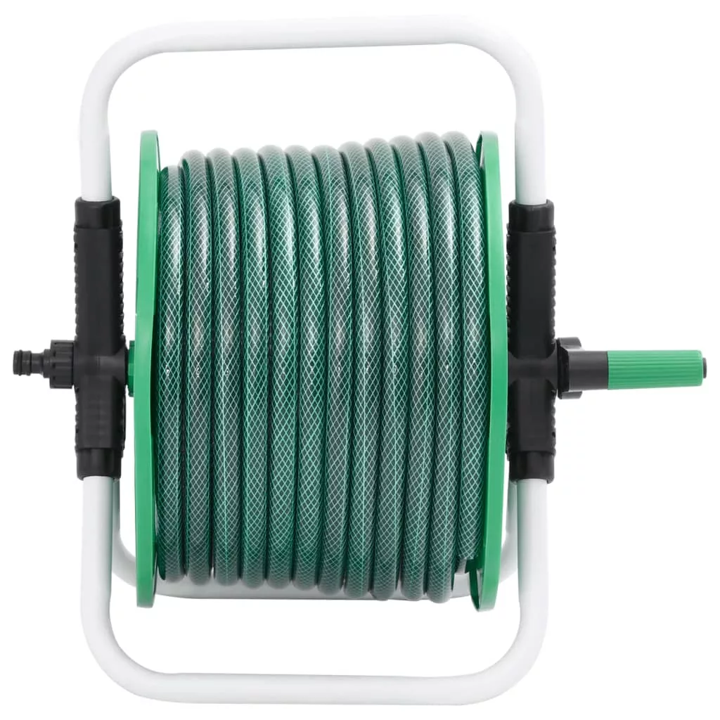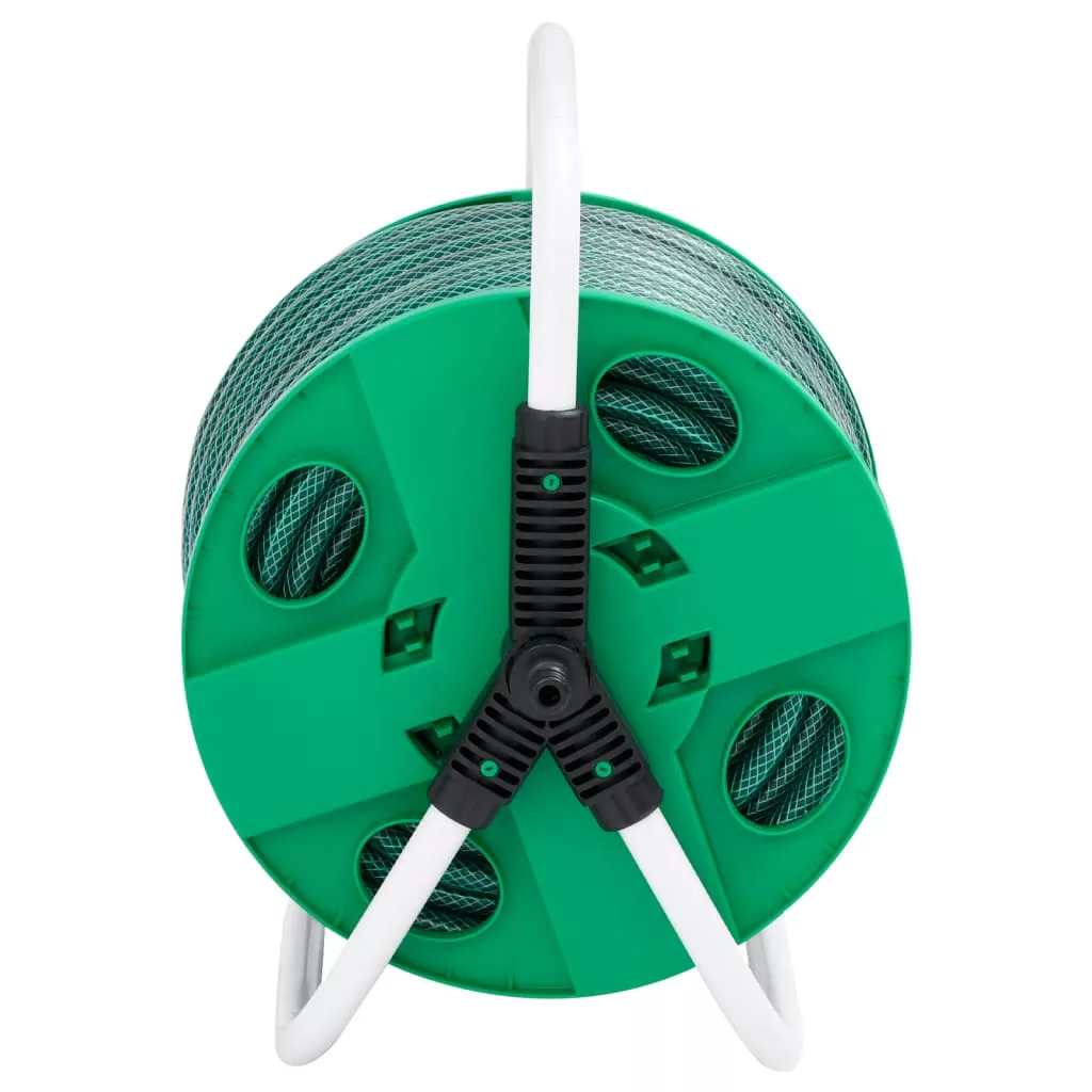 szabadon álló zöld tömlődob 50 m-es PVC tömlővel