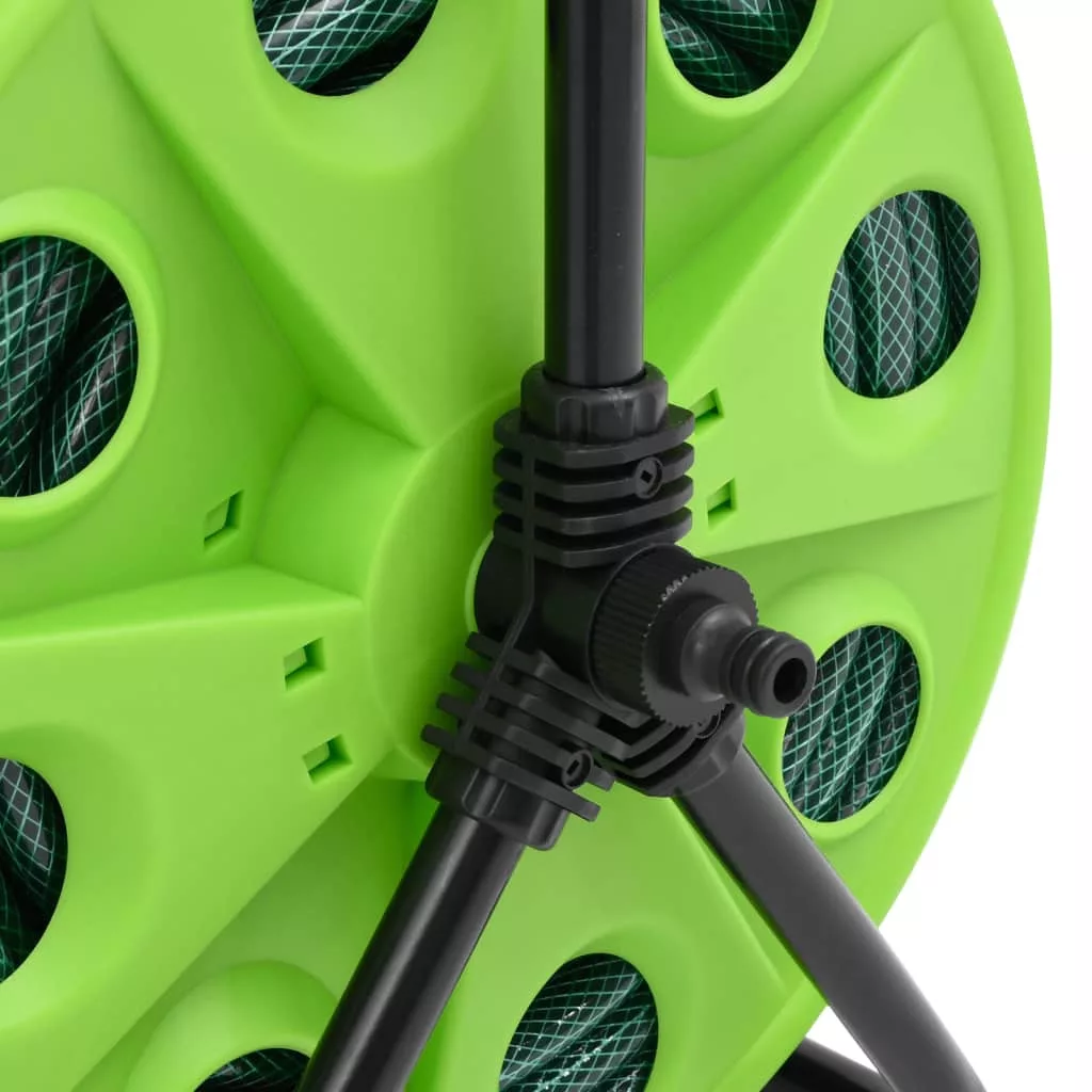 szabadon álló zöld tömlődob 50 m-es PVC tömlővel