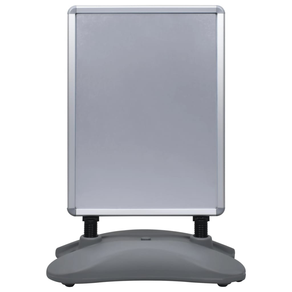 Ha termékei vagy szolgáltatásai hirdetéséhez és promóciójához poszterállványt keres, vízzel tölthető talppal rendelkező posztertartónk segítségére lesz! Alumínium vázból készült, amely tartós és könnyű. A nagy teherbírású műanyag talapzat vízzel vagy homokkal tölthető, hogy súlyozott és stabil talajt biztosítson, a rugós kialakítás pedig biztosítja, hogy a tábla a legnagyobb szélben is ellenálljon. A tábla mindkét oldalán lévő horganyzott lemez mögött a plakátok teljes védelmet élveznek. A kétoldali PVC-fóliával ellátott oldal véd a szennyeződésektől, amely könnyen karbantartható. Ezenkívül a kattintós rendszer segít a plakát gyors felszerelésében és eltávolításában. A vízzel tölthető talppal rendelkező posztertartót könnyű összeszerelni.