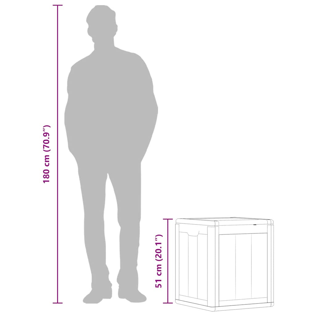 Ez az egyszerű tárolóláda kiváló megoldás a kert, az udvar vagy a terasz rendbetételére. A tárolóláda 100% PP anyagból készült, így időjárás- és UV-álló, valamint könnyen mozgatható. A kerti tárolóláda visszafogott, mégis időtlen dizájnnal rendelkezik, és tökéletesen illeszkedik a beltéri és kültéri dekorációhoz. A kerti tárolóláda emellett bőséges tárolóhelyet kínál párnák, párnák, egyéb háztartási vagy kerti tárgyak számára elérhető közelségben. Figyelem: Kültéri bútora élettartamának meghosszabbítása érdekében javasoljuk, hogy tisztítsa rendszeresen, és ne hagyja feleslegesen a szabadban, védelem nélkül.Tisztítás: Használjon enyhe szappanoldatot.Tárolás: Ha lehetséges, tárolja zárt, hűvös, száraz helyen. Ha a terméket a szabadban tárolja, védje vízálló burkolattal. Eső vagy havazás után törölje le és szárítsa fel a felesleges vizet vagy havat a sík felületekről. Hagyjon elegendő légkeringést a nedvességből eredő károk elkerülése érdekében.