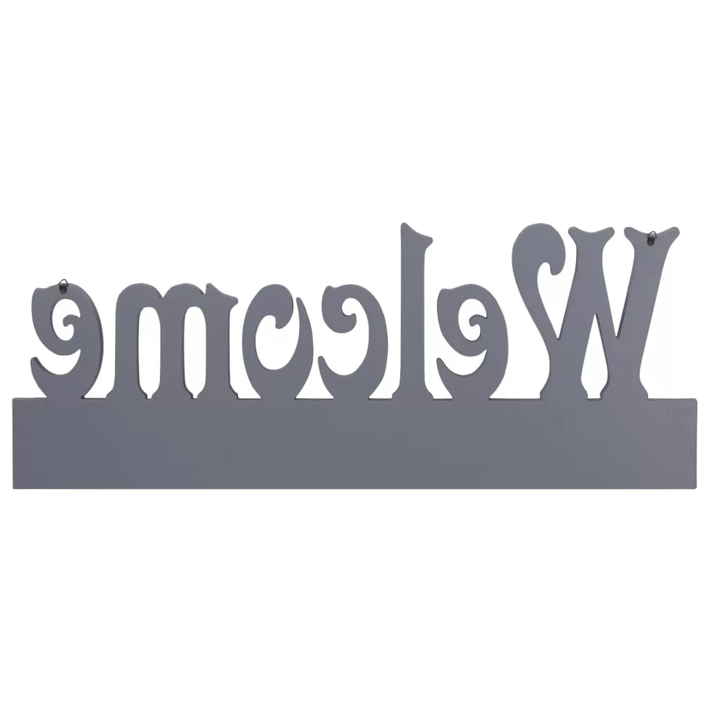 szürke WELCOME" feliratú fali fogas 74 x 29,5 cm"