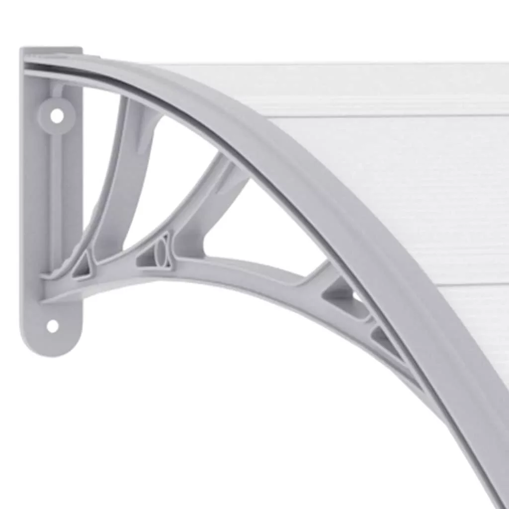 Kifinomult ajtótetőnk nem csak javítja ingatlana megjelenését, hanem megvédi ajtaját vagy ablakát a csapadéktól anélkül, hogy elzárná a fényt. Otthoni és kereskedelmi használatra egyaránt alkalmas. A homorú polikarbonát lemezek hihetetlenül tartósak és ellenállnak az időjárásnak és a korróziónak. Emellett a tömör szerkezet az erős ABS konzolokkal és alumíniumsínekkel rendkívül erős, és stabilan tartja az előtetőt. Minden szükséges összeszerelési tartozékot mellékelünk a gyors és egyszerű telepítés érdekében. Felhívjuk figyelmét, hogy az ajtótetőnk nem képes ellenállni az erős havazásnak. A gyermekeket felügyelni kell, hogy ne játsszanak a készülékkel. Tartsa távol a gyerekeket az összeszerelési területtől. Figyelem: Használat előtt figyelmesen olvassa el az utasításokat, és őrizze meg további hivatkozás céljából.