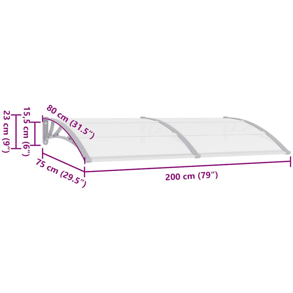 szürke és átlátszó polikarbonát ajtóelőtető 200 x 75 cm